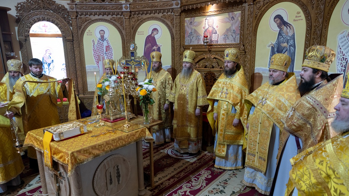 Накануне воскресного дня, митрополит Пантелеимон совершил Всенощное бдение в Свято-Петро-Павловском кафедральном соборе.
