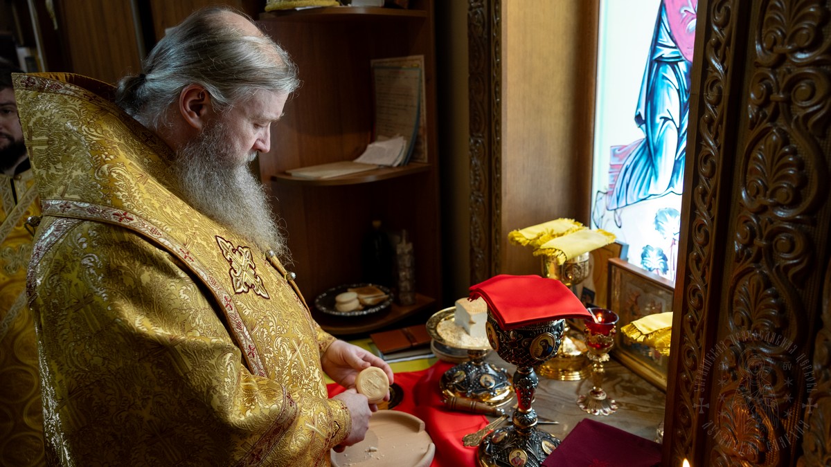 После сугубой ектении владыка вознес молитву о мире на Святой Земле, молитву о Святой Руси, и молитву об исцелении болящих.