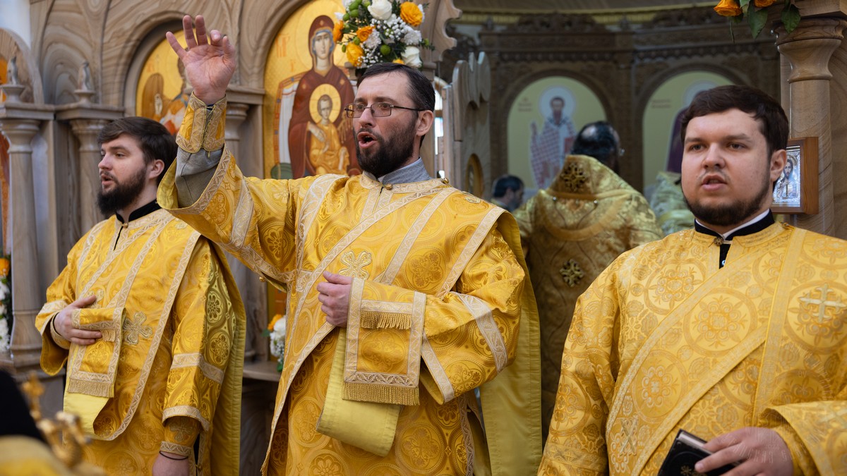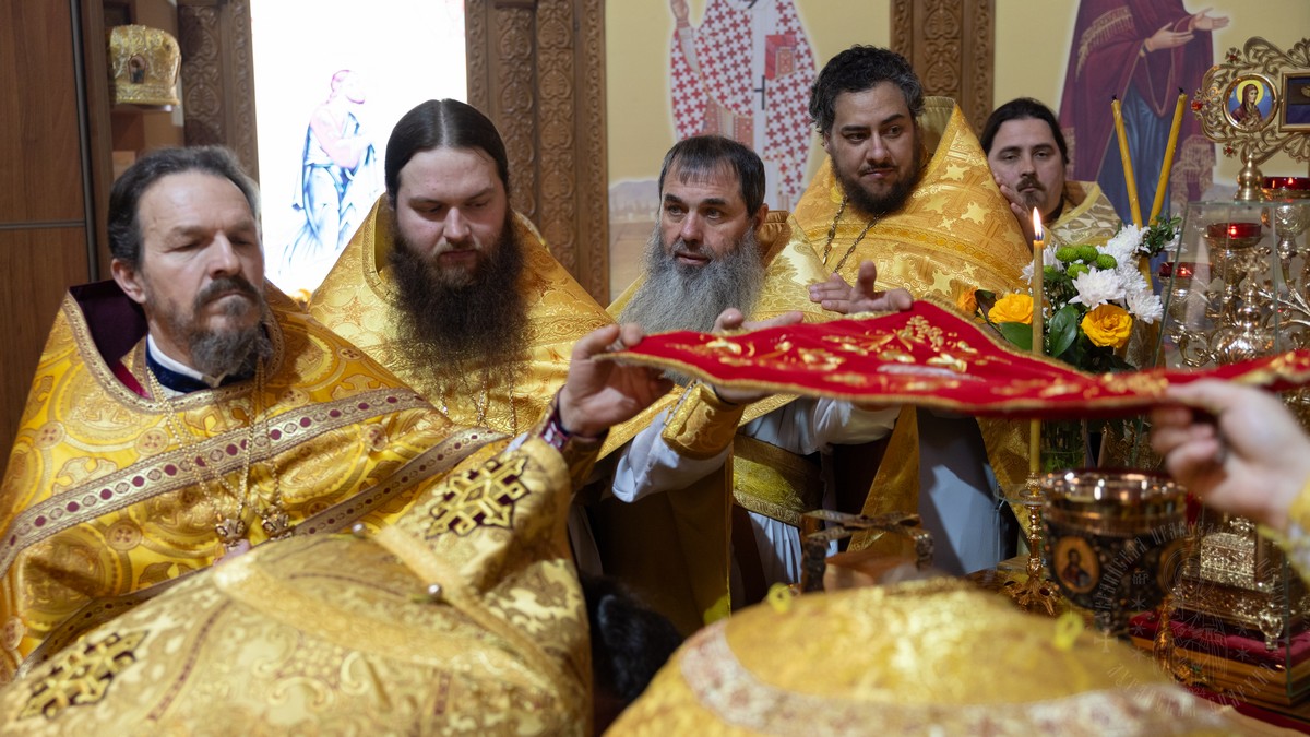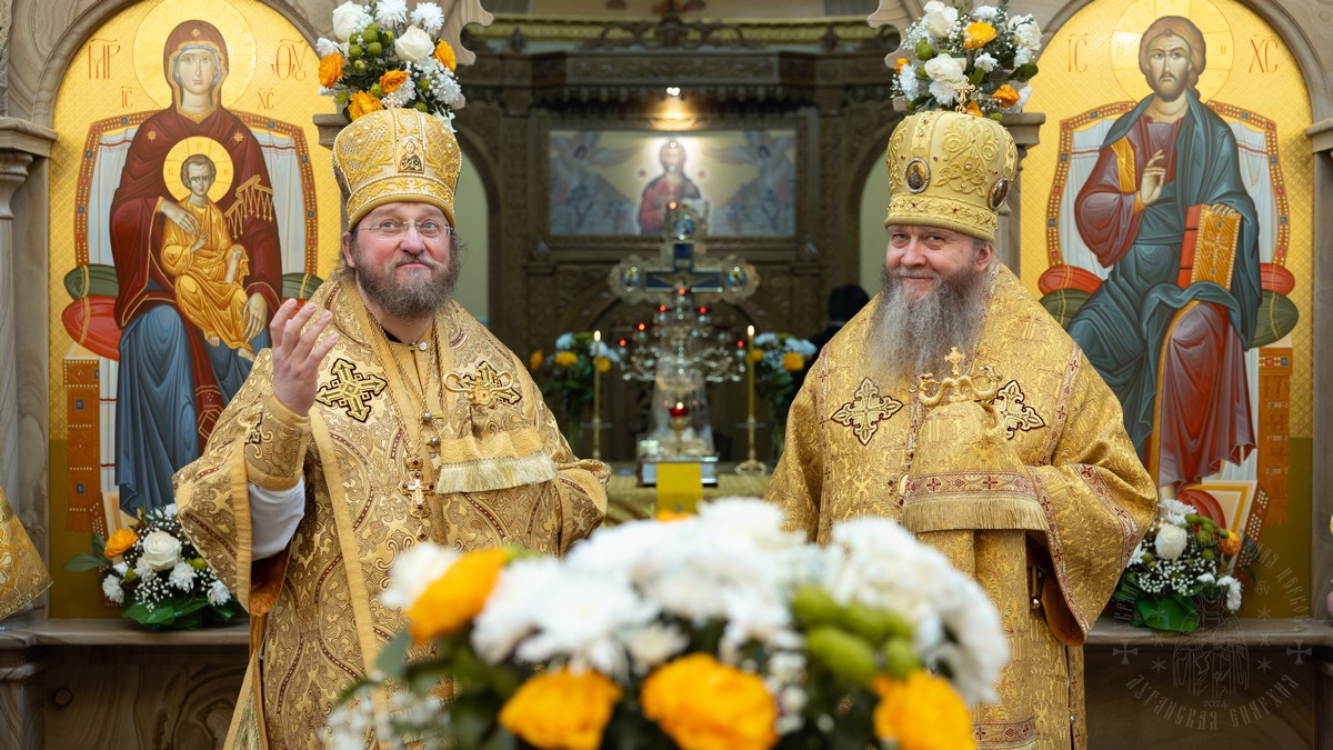 За Литургией Преосвященным архипастырям сослужил секретарь епархии прот. Андрей Зозуля, благочинный Алчевского округа прот. Александр Устименко, благочинный Ровеньковского округа Ровеньковской епархии прот. Григорий Устименко, благочинный Стахановского округа Северодонецкой епархии прот. Василий Бобурка, а также приглашенное духовенство.