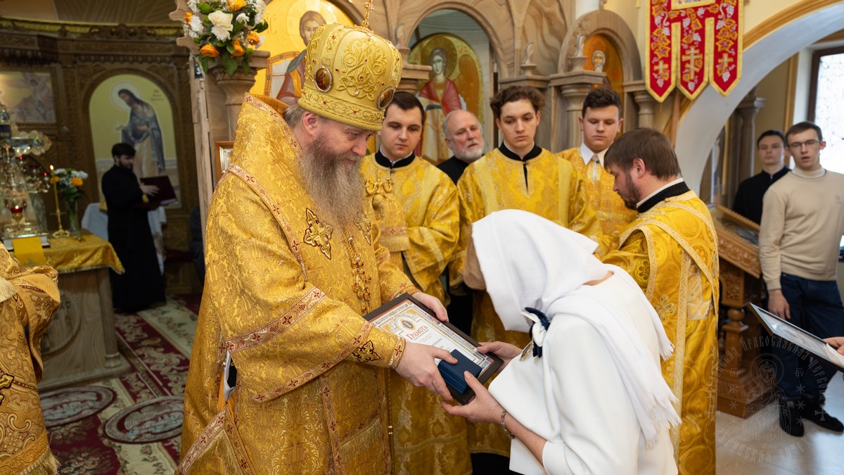 По окончании Литургии архипастыри поздравили духовенство, преподавателей и учеников с 10-летним юбилеем со времени основания просветительского центра.
