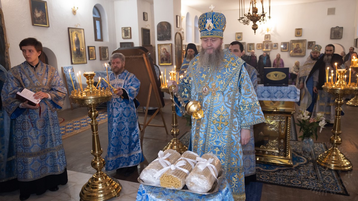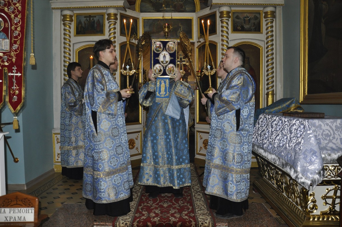Накануне праздника, владыка совершил Всенощное бдение в Свято-Петро-Павловском кафедральном соборе.
