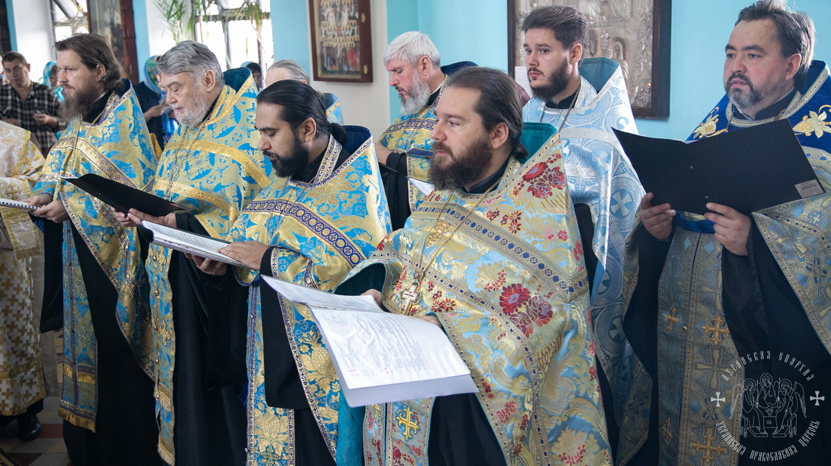 Его Преосвященству сослужил благочинный Краснодонского округа Ровеньковской епархии прот. Димитрий Притула с духовенством благочиния, духовенство центрального Луганского округа, а также соборное духовенство.