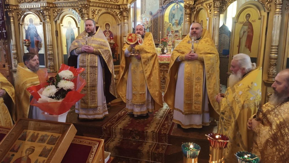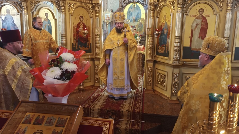 После многолетий, провозглашенных протодиаконом, духовенство поздравило собрата с памятной датой, выразили слова благопожеланий и вручили памятные подарки.