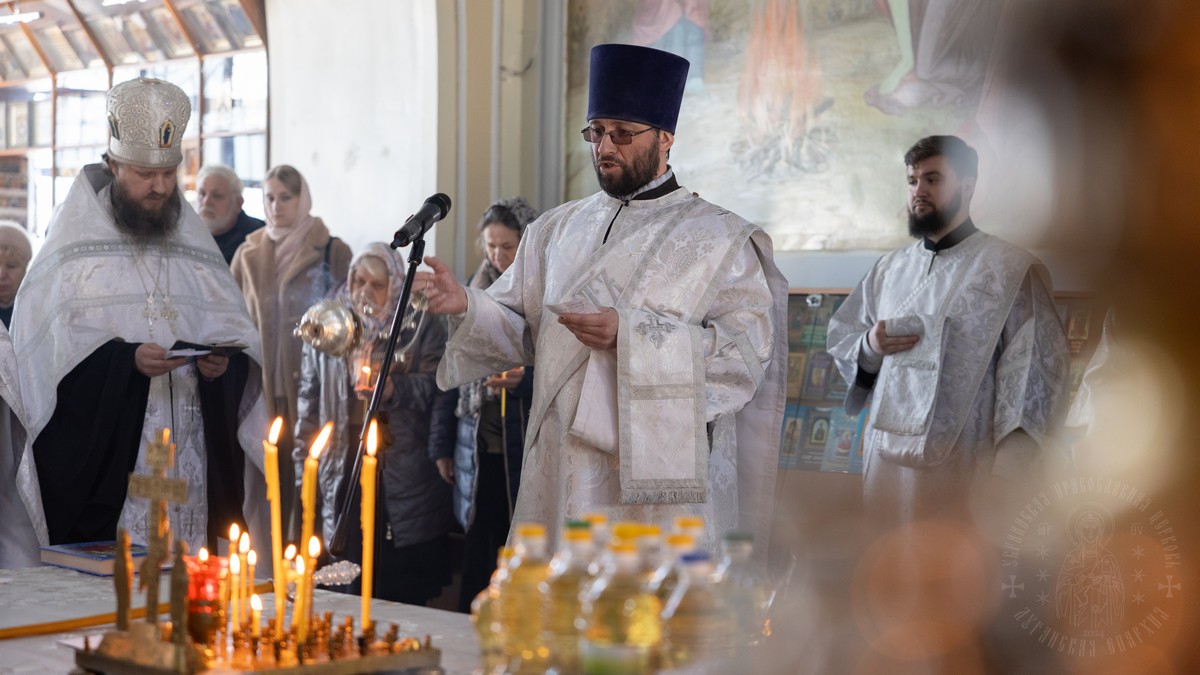После сугубой ектении владыка вознес молитву о мире на Святой Земле, молитву о мире на святой Руси, и молитву об исцелении болящих.