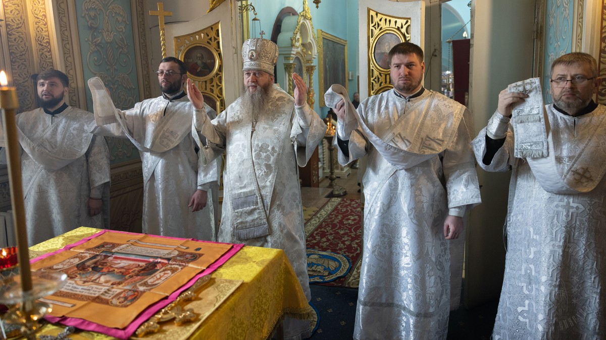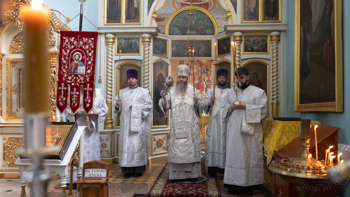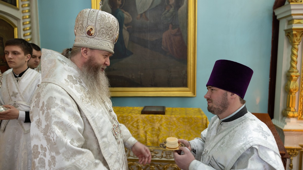 За Литургией Его Высокопреосвященству сослужило духовенство кафедрального собора.