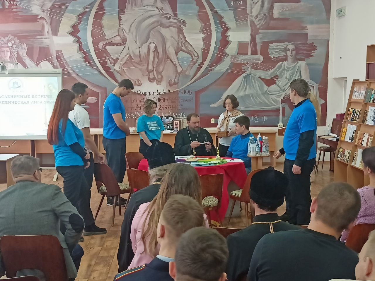14 марта в библиотеке имени М. Горького, ко Дню православной книги состоялась интеллектуальная игра знатоков православной культуры. «Масличные встречи. Студенческая лига: 2024». Который провёл православный интелектуально-дискуссионный клуб «Копие». На мероприятии присутствовал митрополит Луганский и Алчевский Пантелеимон. Владыка благословил ребят на соревнование, сказав напутственное слово. В наблюдательном совете были представлены руководители епархиальных отделов: по делам молодежи, образования и катехизации, и Церковь и культура.