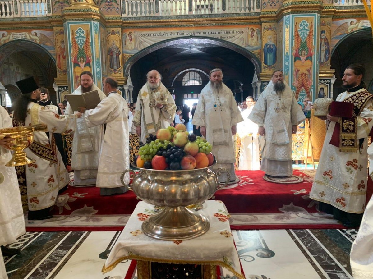 По окончании Литургии архипастыри освятили плоды нового урожая.