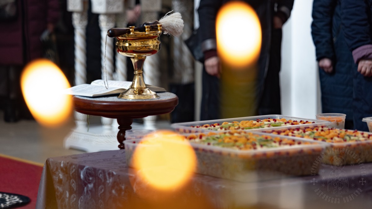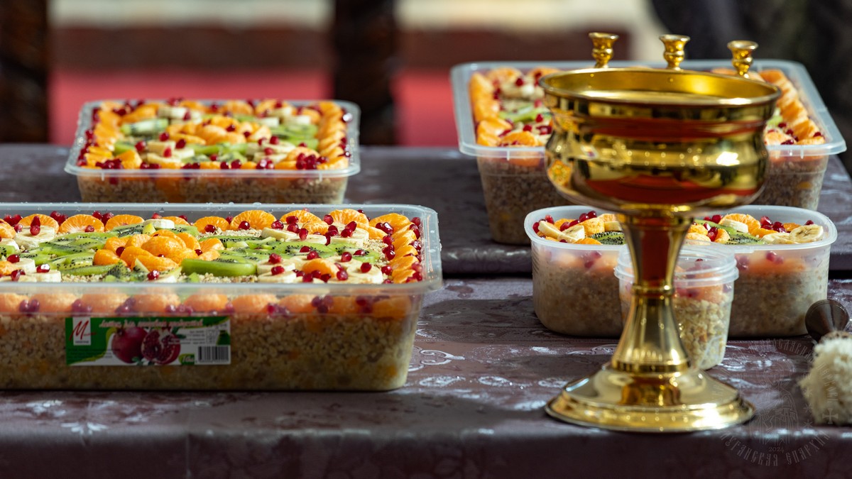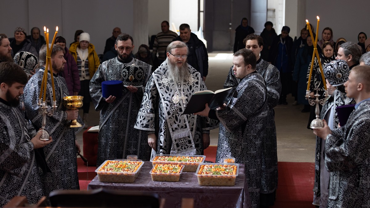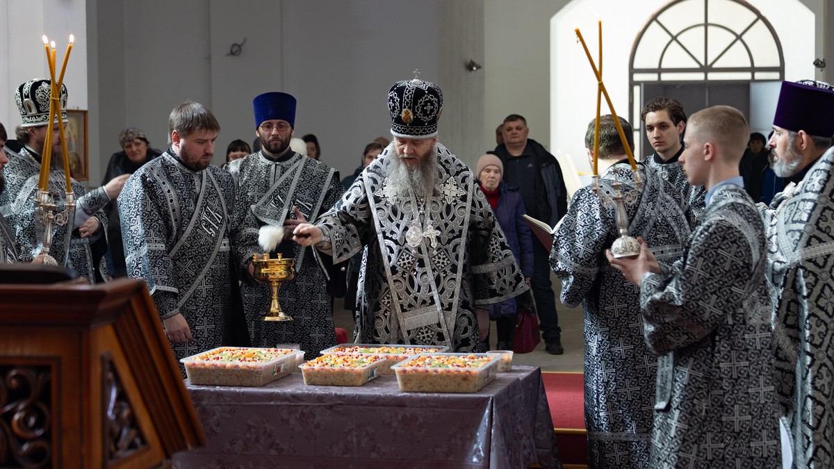 По заамвонной молитве, владыка Пантелеимон совершил молебное пение с чтением канона святому великомученику Феодору Тирону и освятил коливо.