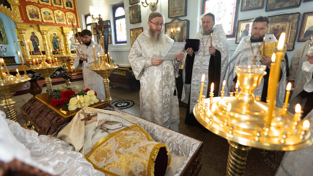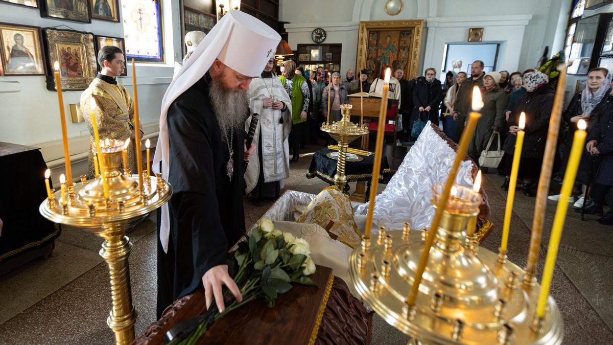 Сегодня, 26 марта, Высокопреосвященнейший Пантелеимон, митрополит Луганский и Алчевский, в сослужении секретаря епархии прот. Андрея Зозули и духовенства первого городского благочиннического округа, совершил чин священнического отпевания в храме святого великомученика Димитрия Солунского.