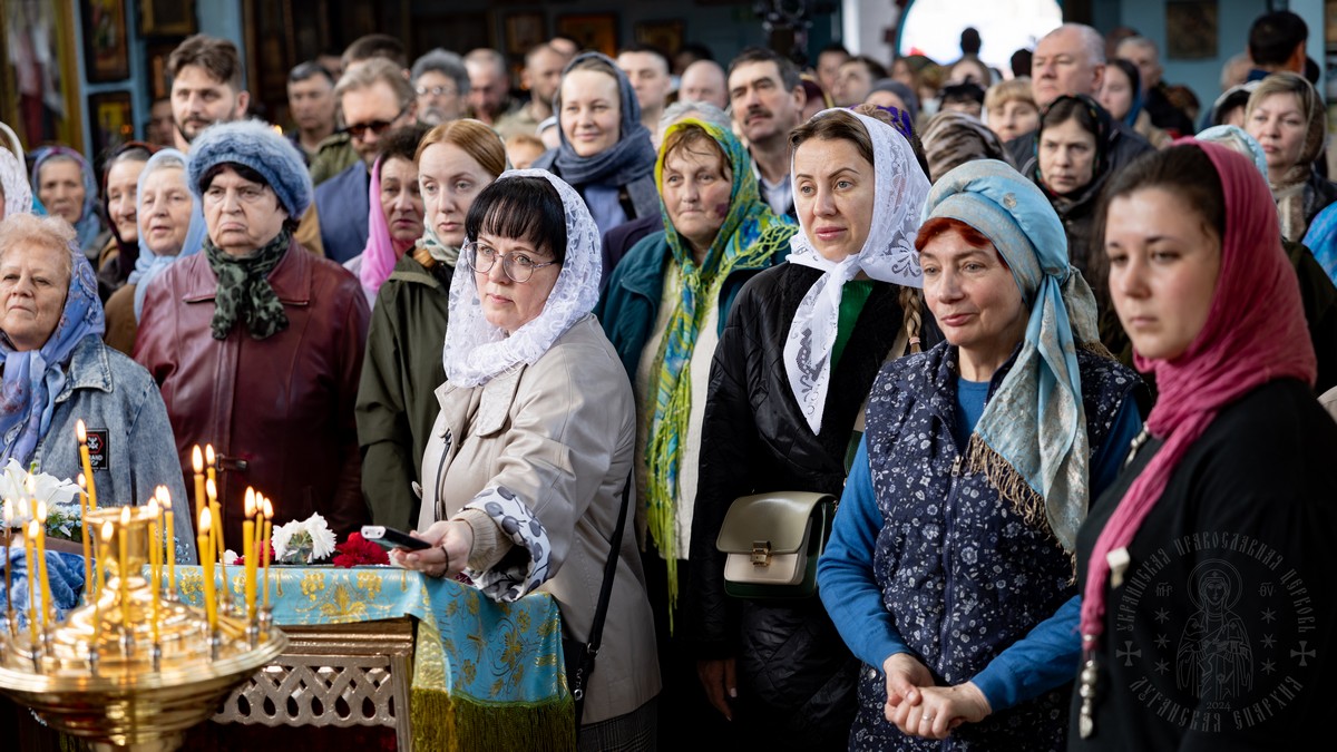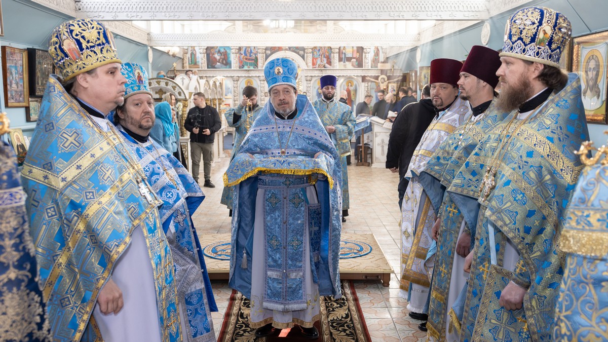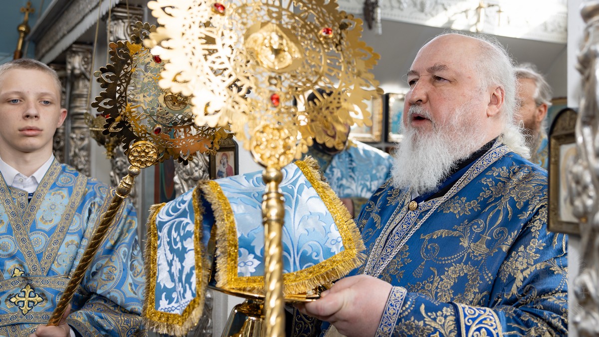 После запричастного стиха, архипастыри поздравили молящихся с двунадесятым праздником Благовещения Пресвятой Богородицы.