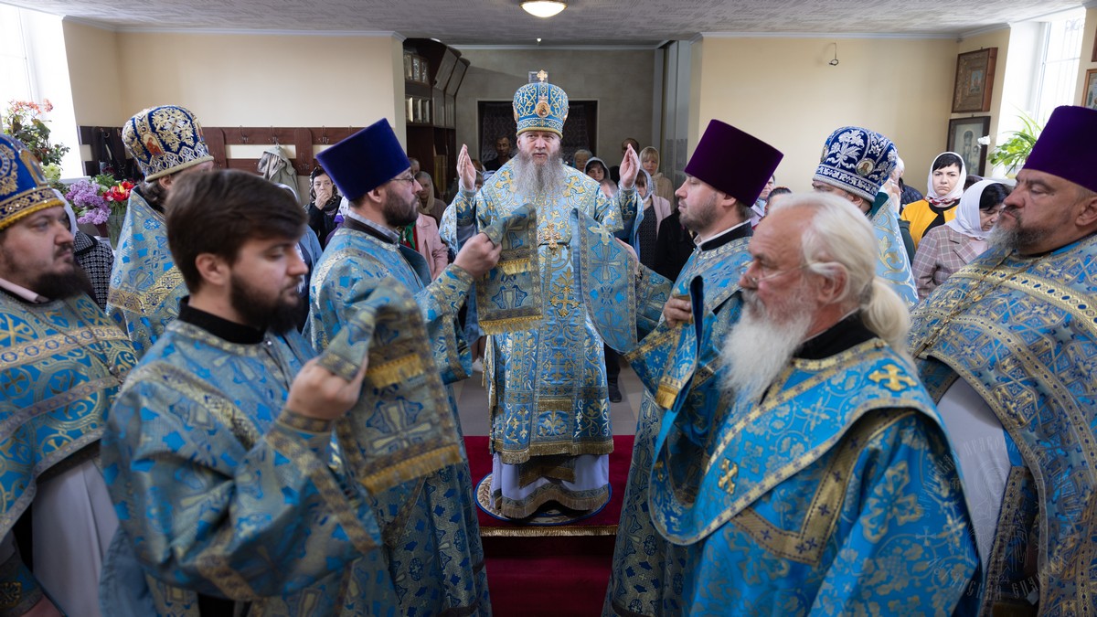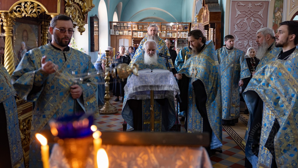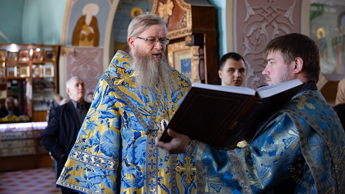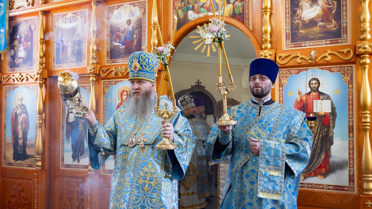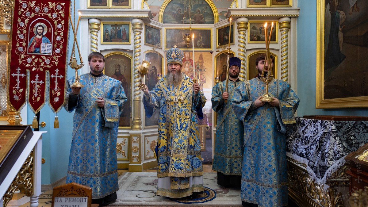 Вечером, накануне праздника, владыка Пантелеимон совершил Утреню с чтением акафиста Пресвятой Богородице в Свято-Петропавловском кафедральном соборе.