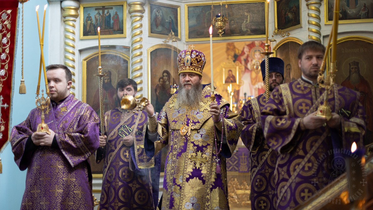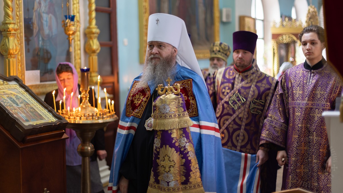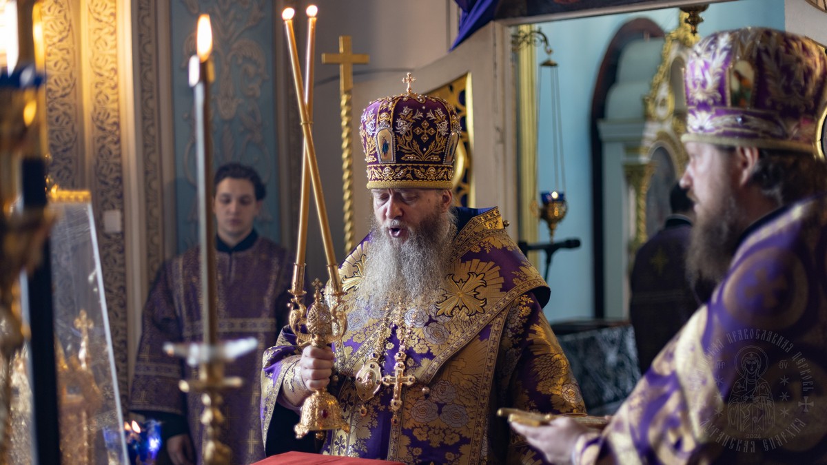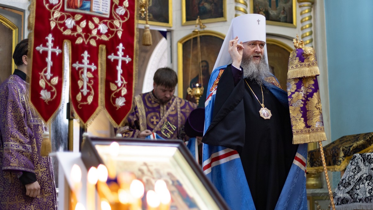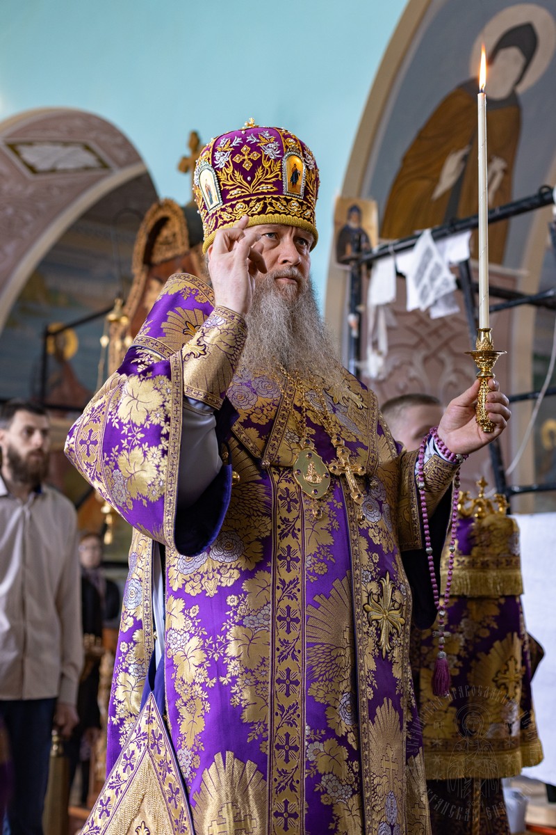 Вечером, накануне воскресного дня, архипастырь совершил в соборе Всенощное бдение.