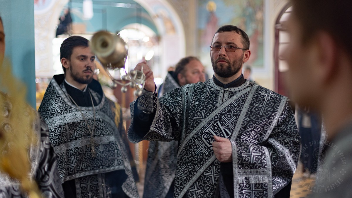 Вместе с архипастырем, в чтении акафиста Страстям Христовым принимали участие священнослужители кафедрального собора.