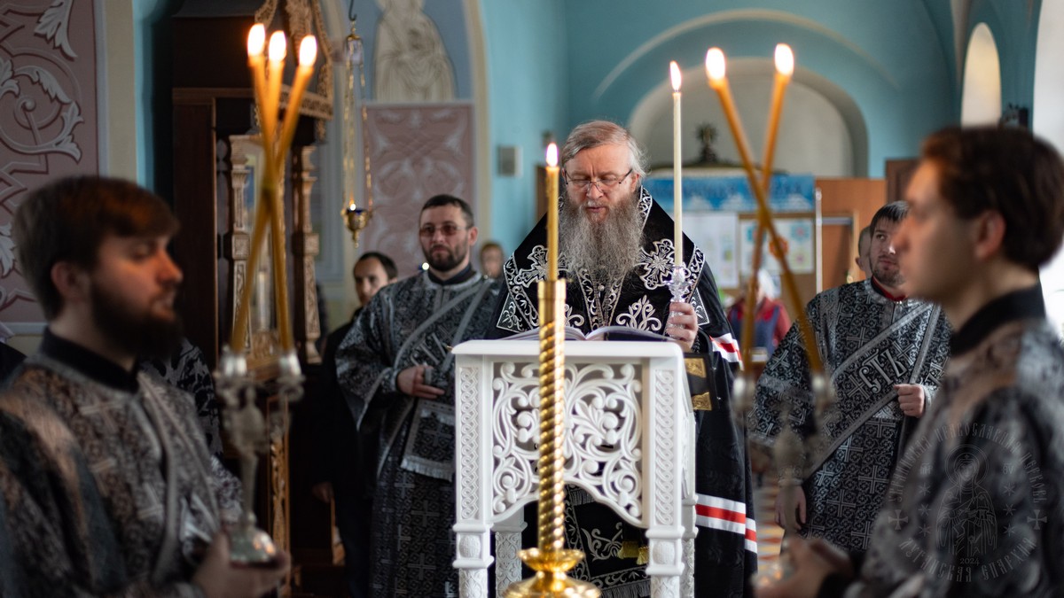 После акафиста, владыка Пантелеимон прочел главы из Евангелия, повествующие о спасительных страданиях Господа нашего Иисуса Христа.