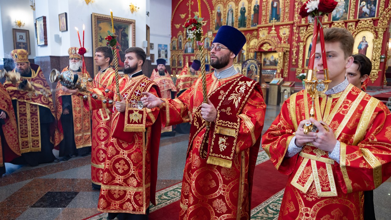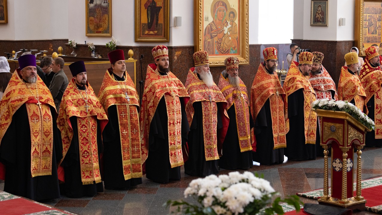 За Богослужением архипастырю сослужили отцы благочинные, настоятели и клирики городских храмов.