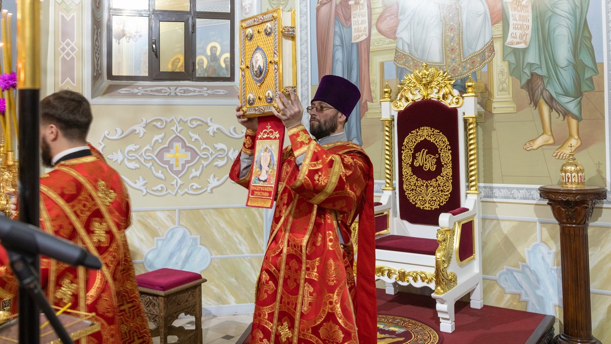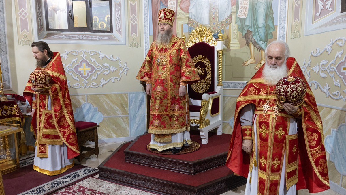 После сугубой ектении владыка вознес молитву о мире на Святой Земле, молитву о Святой Руси, и молитву об исцелении болящих.