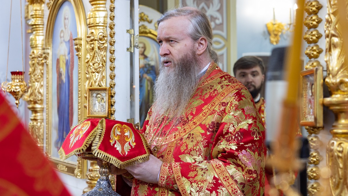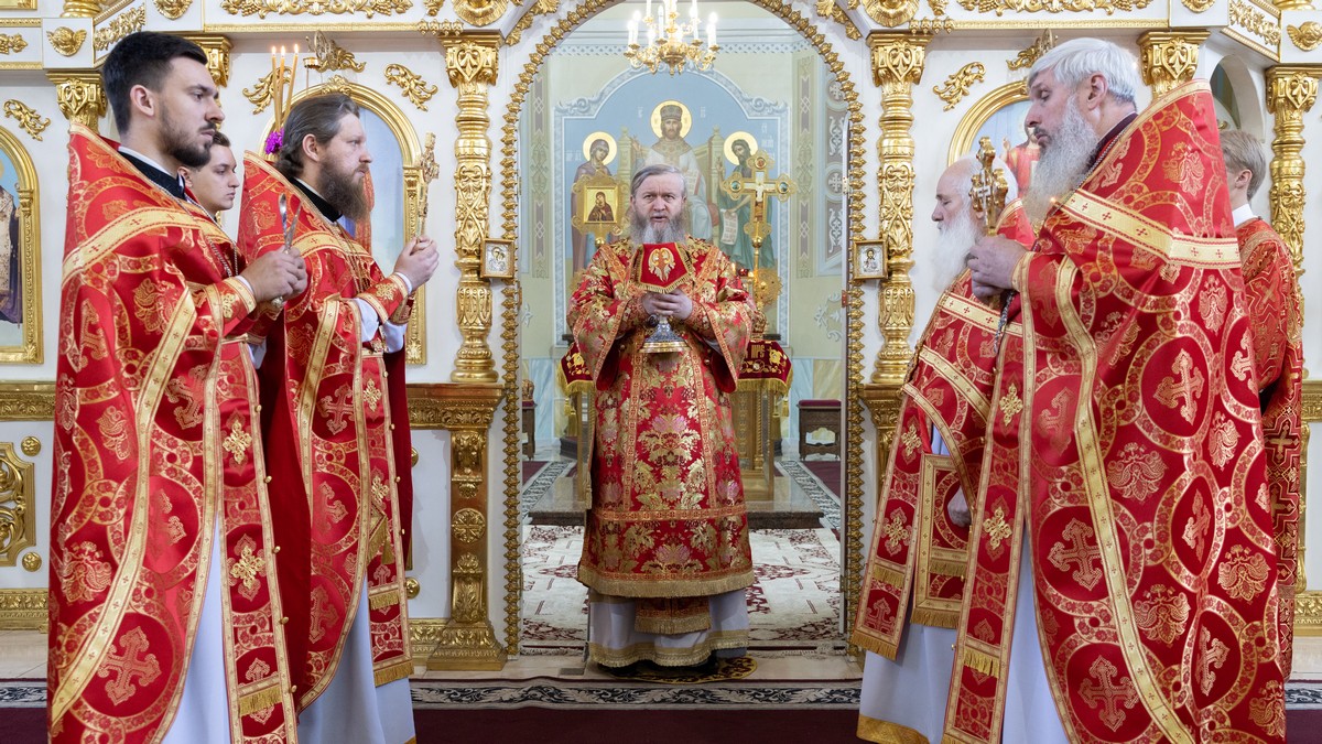 За Божественной литургией Его Высокопреосвященству сослужило духовенство кафедрального собора.