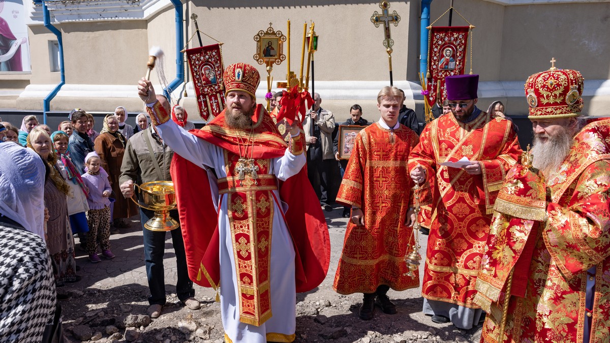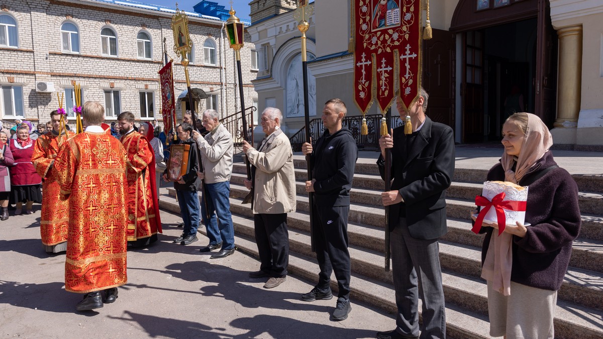 По окончании Литургии владыка совершил водосвятный молебен после которого все участники соборной молитвы прошли пасхальным Крестным ходом вокруг собора, воспевая Воскресшего Господа.