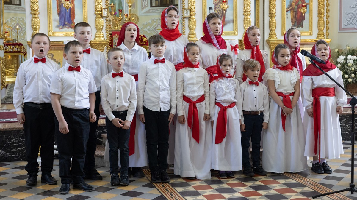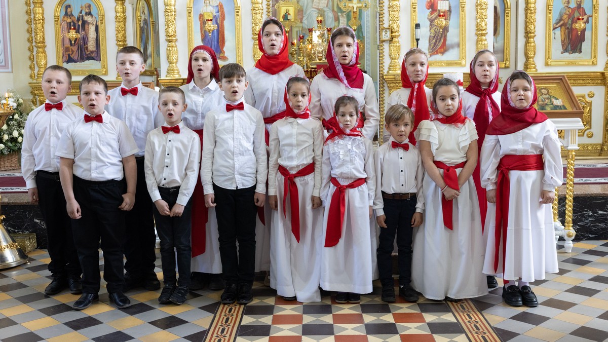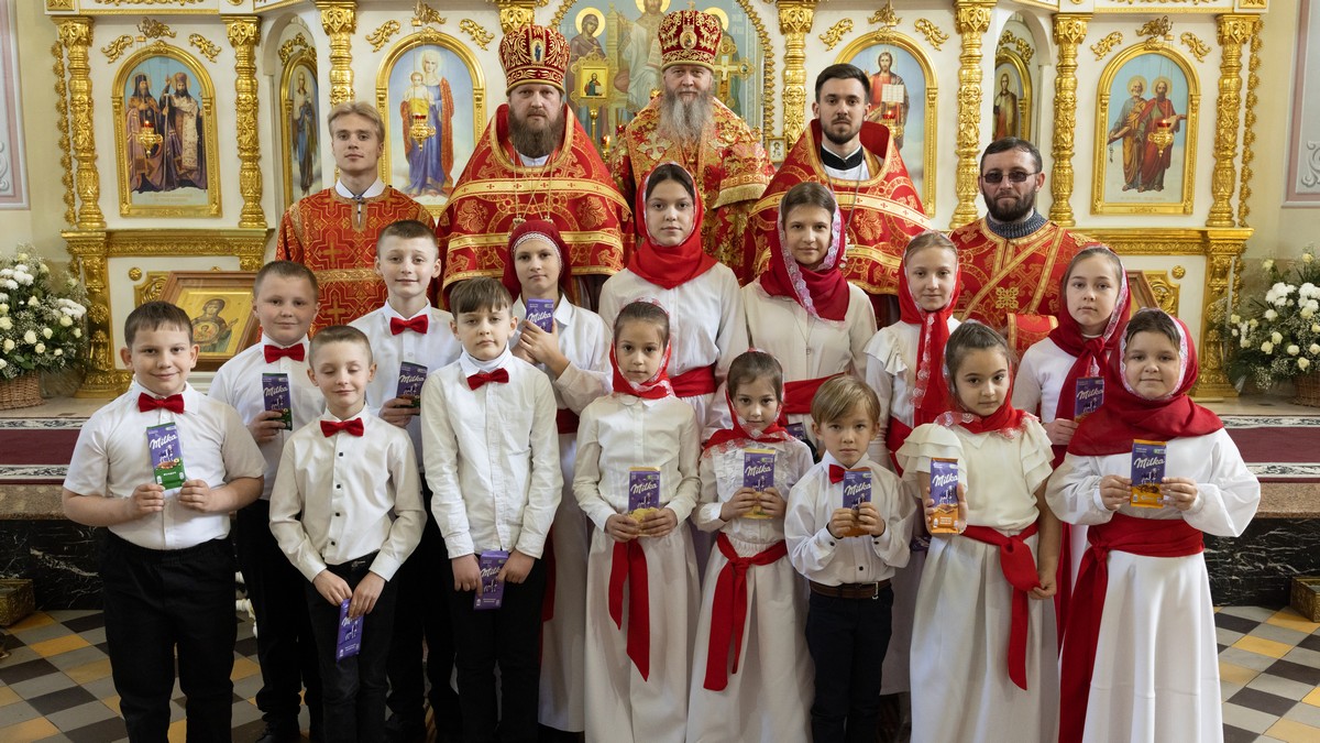 В завершение праздника, владыку и прихожан собора поздравили дети воскресной школы пасхальными песнопениями.