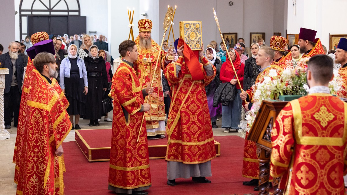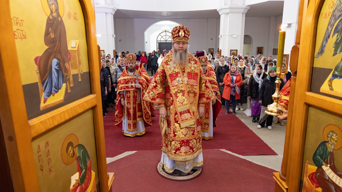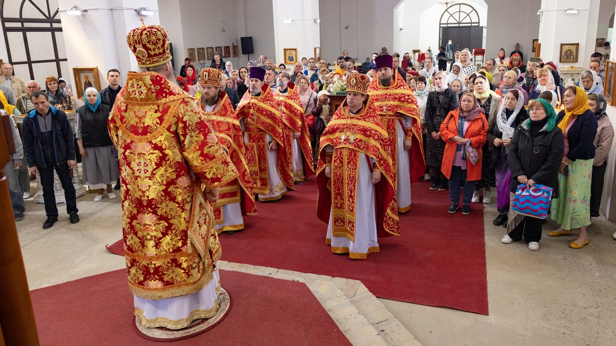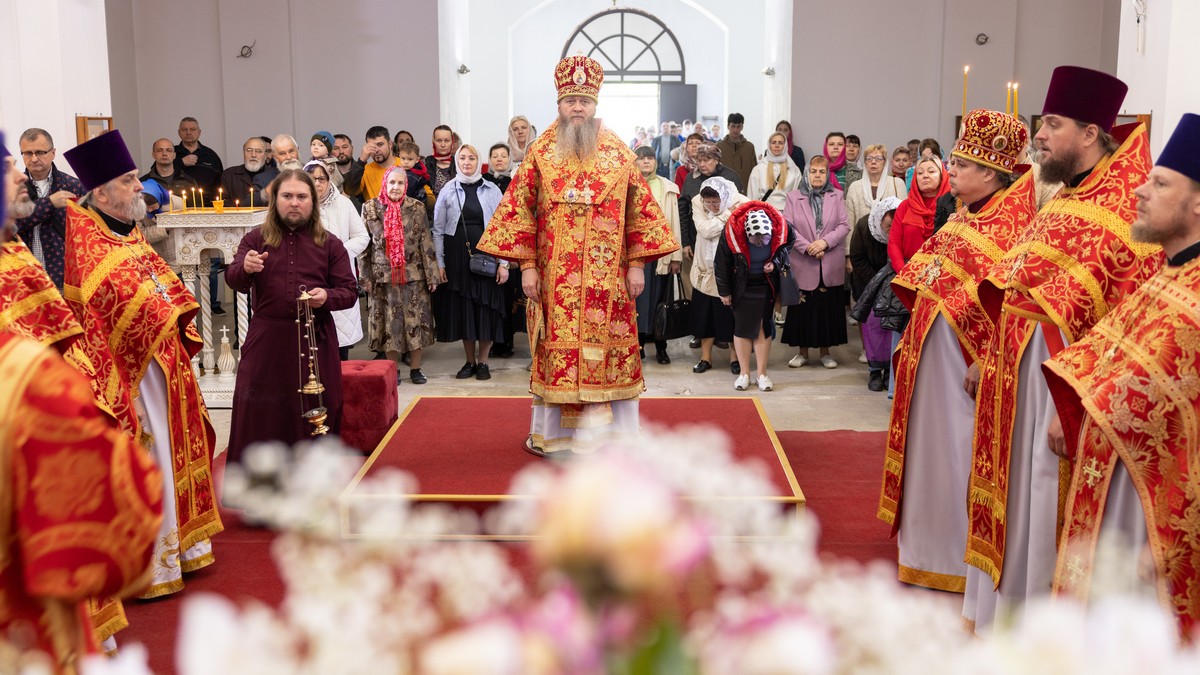 В конце богослужения, архипастырь обратился с приветственным словом, в котором выразил слова благодарности духовенству и пастве за соборную молитву, а также поздравил с праздником Пасхи Христовой.