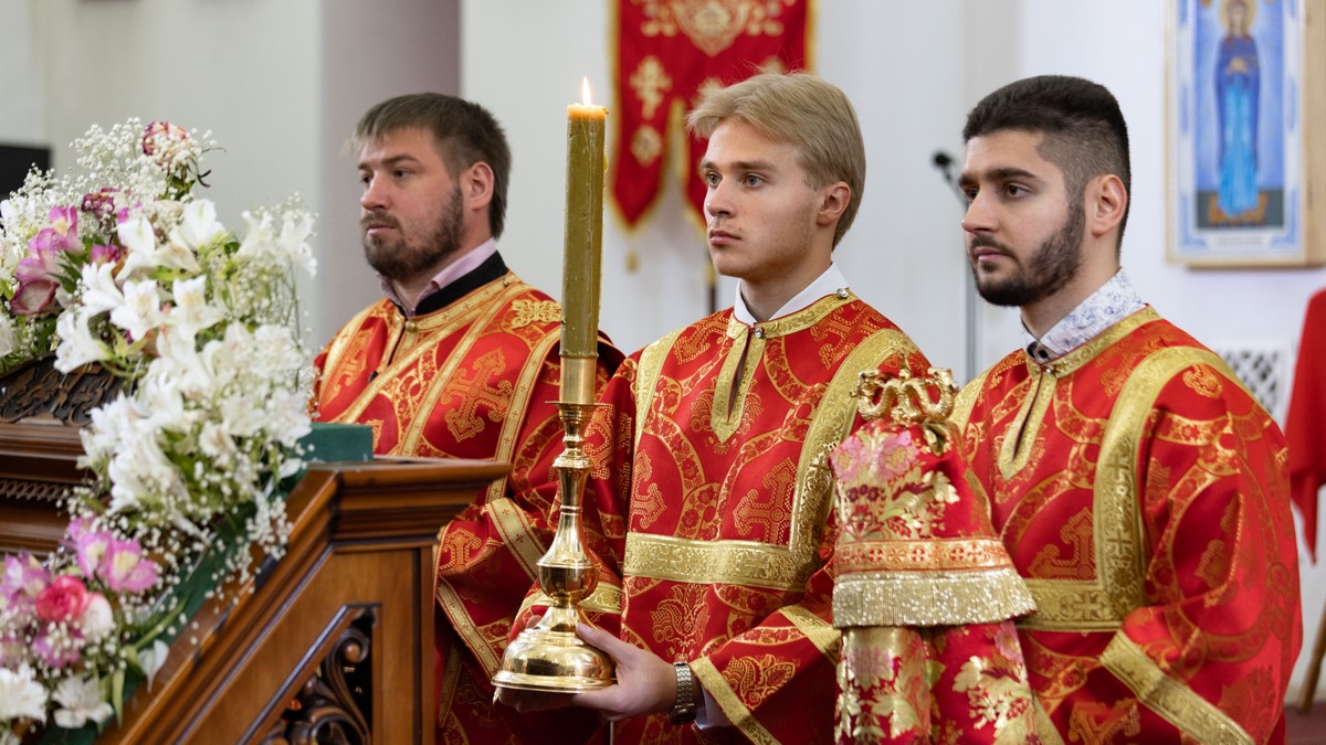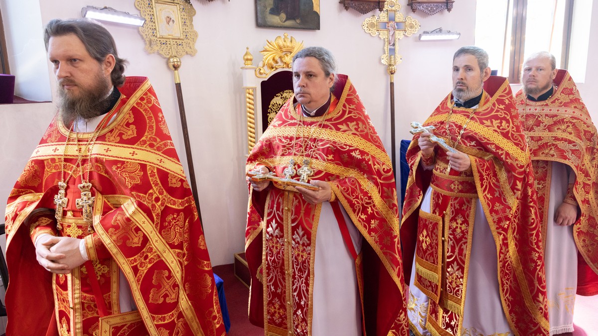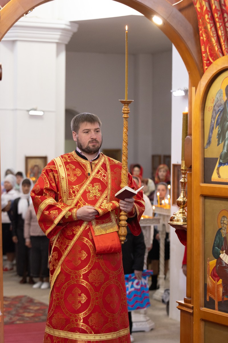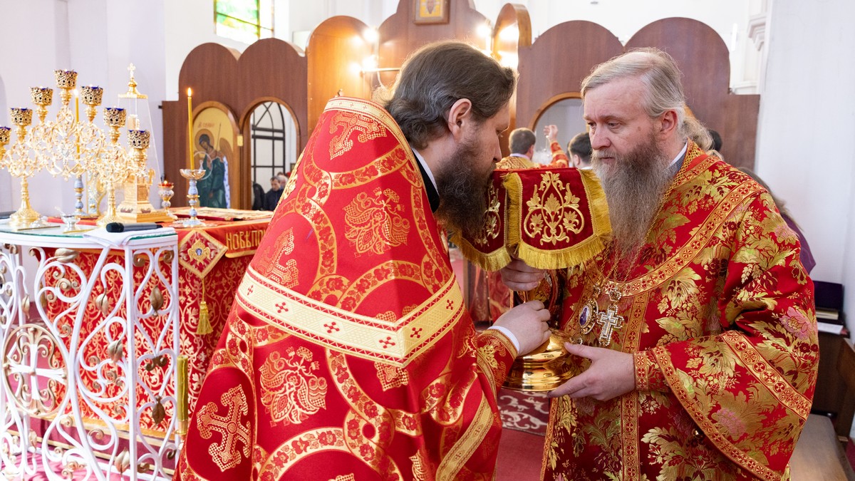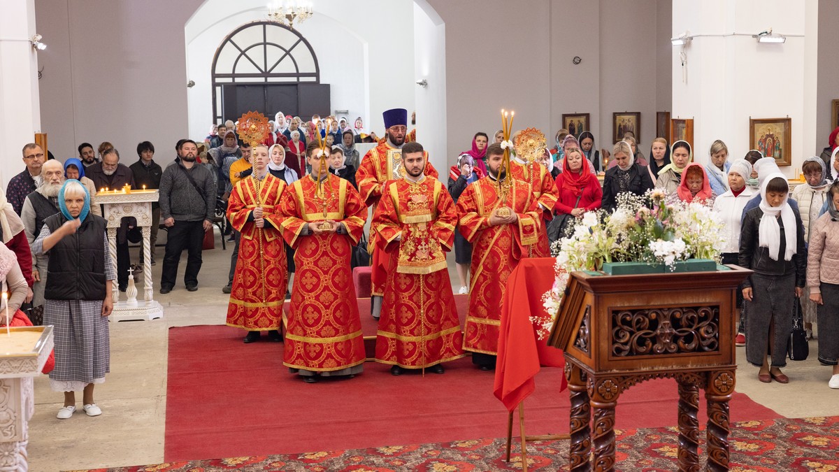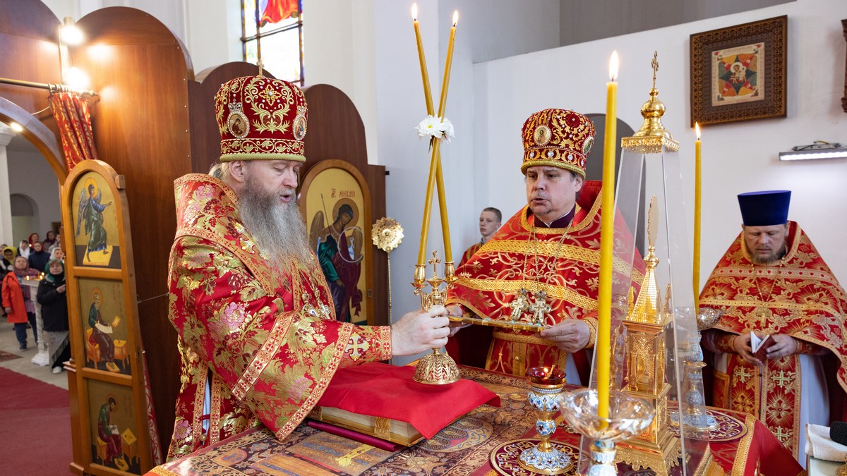 За Божественной Его Высокопреосвященству сослужил секретарь епархии прот. Андрей Зозуля, настоятель храма и благочинный центрального церковного округа прот. Александр Пономарев, а также приходское духовенство.