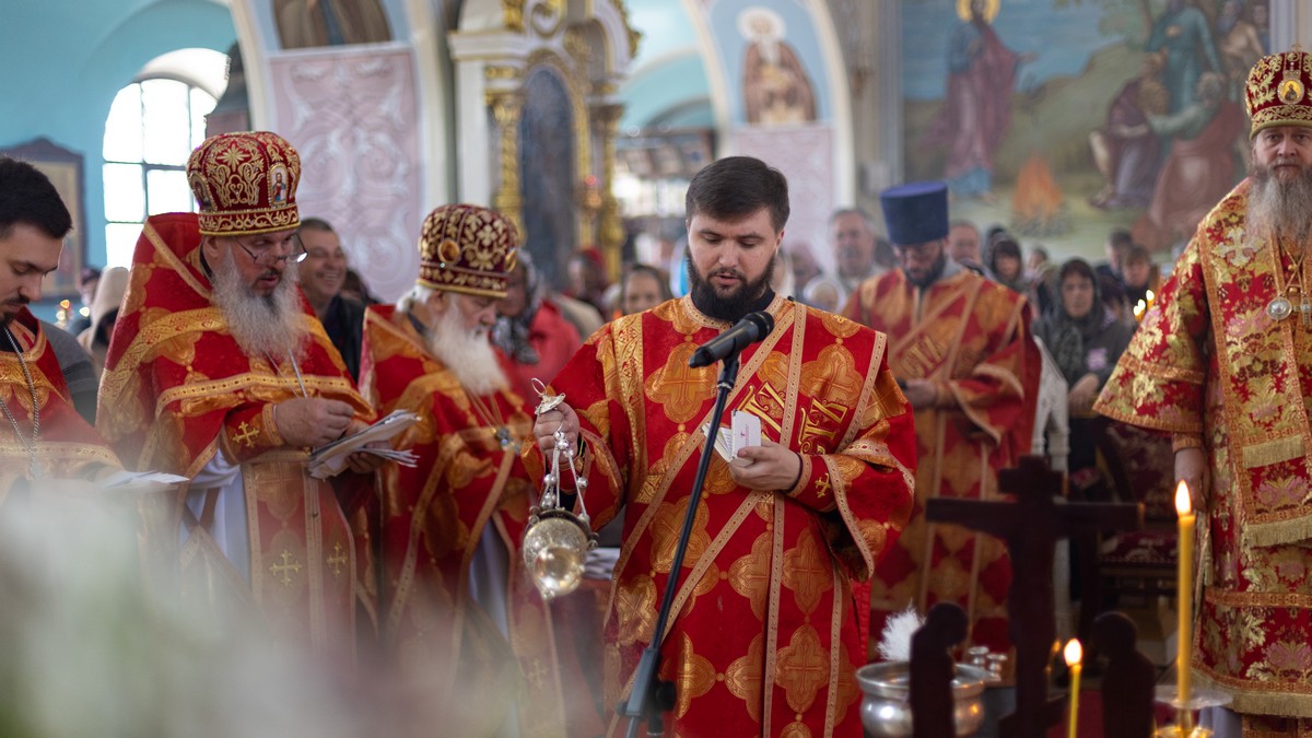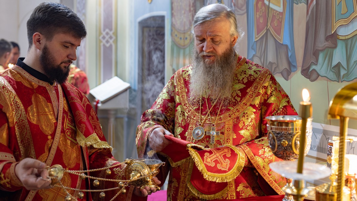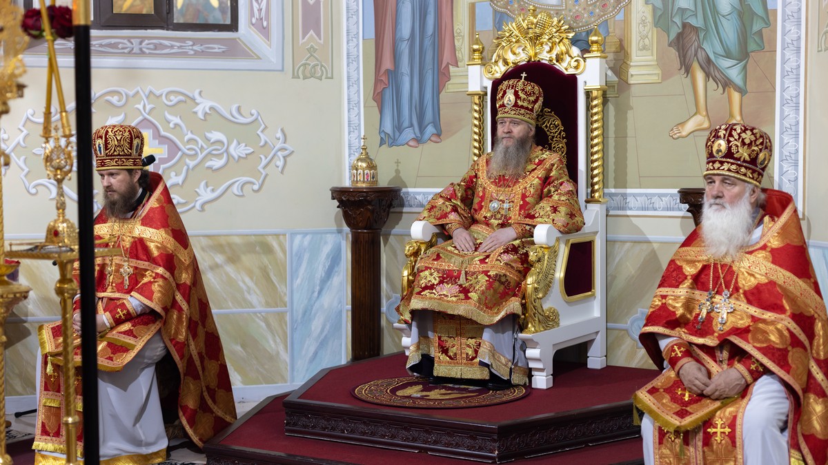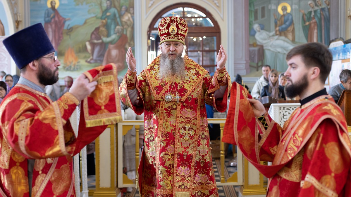 За Божественной литургией Его Высокопреосвященству сослужило духовенство кафедрального собора.