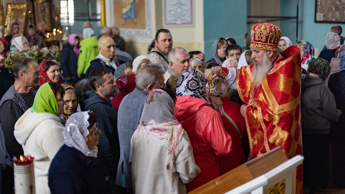 После сугубой ектении владыка вознес молитву о мире на Святой Земле, молитву о Святой Руси, и молитву об исцелении болящих.