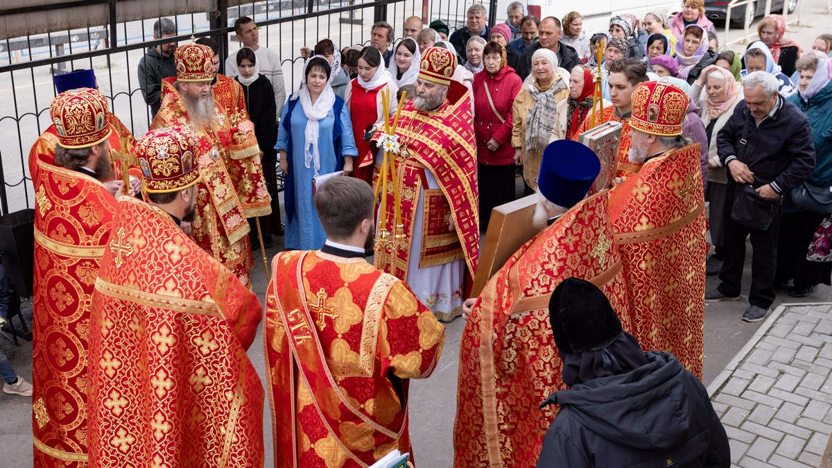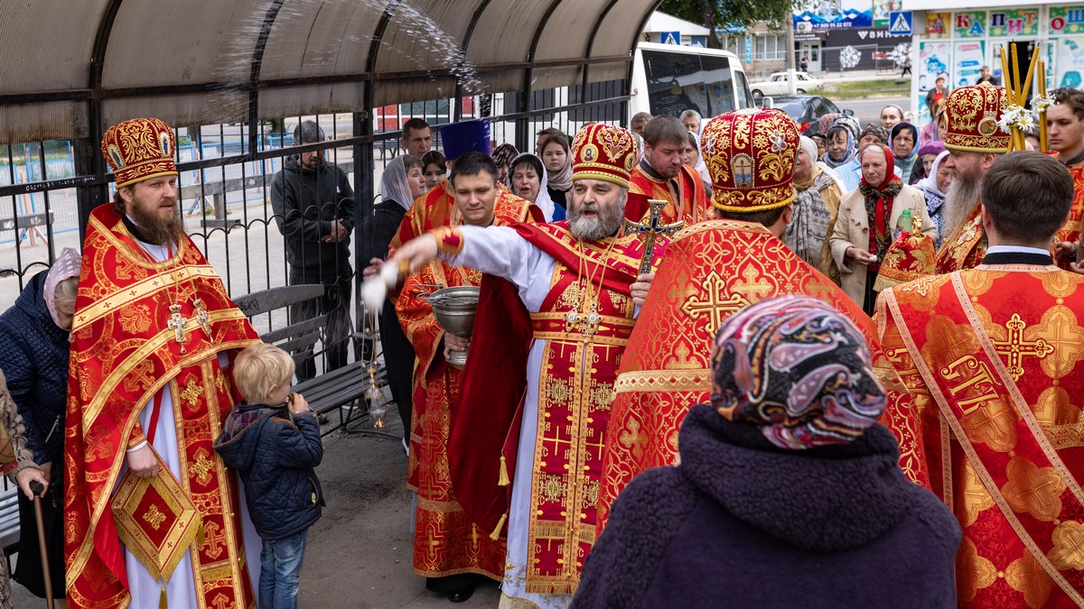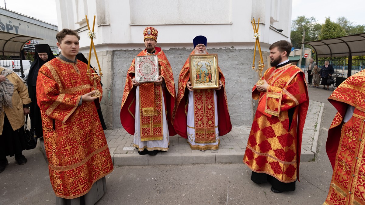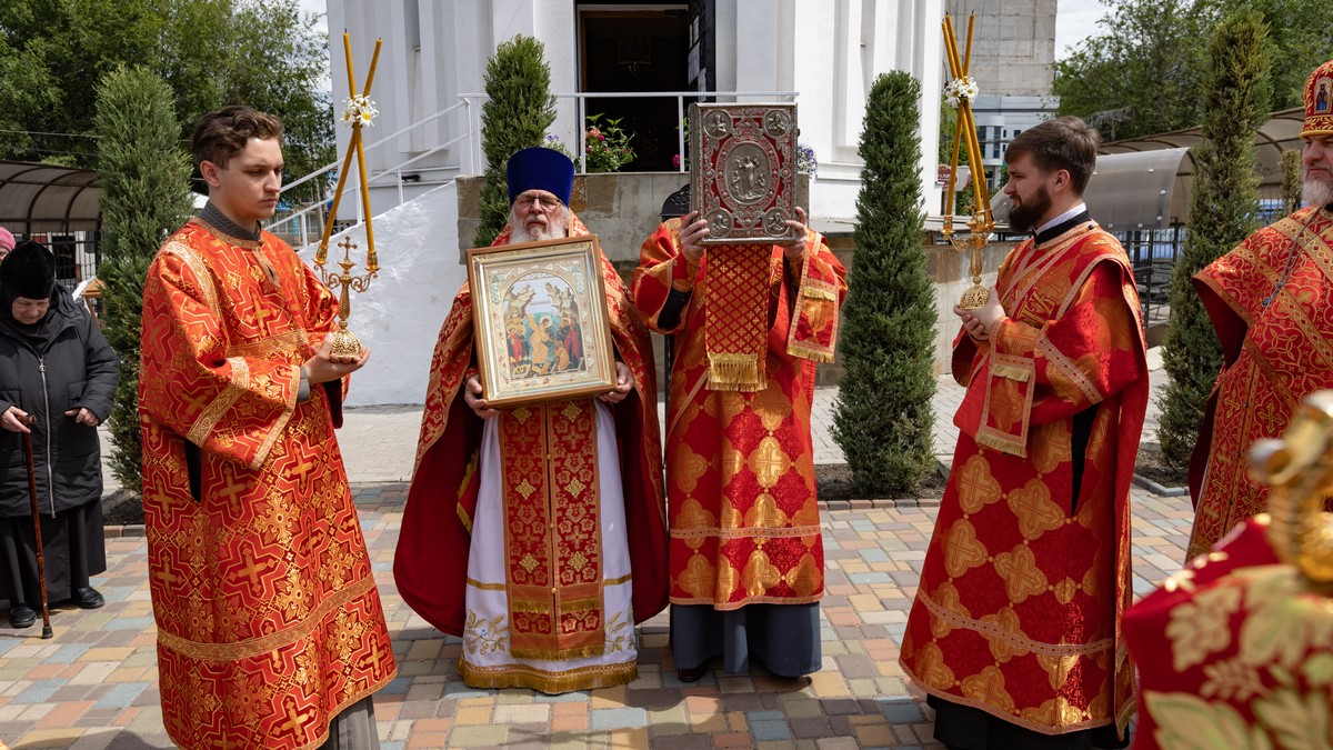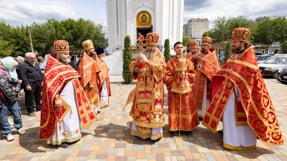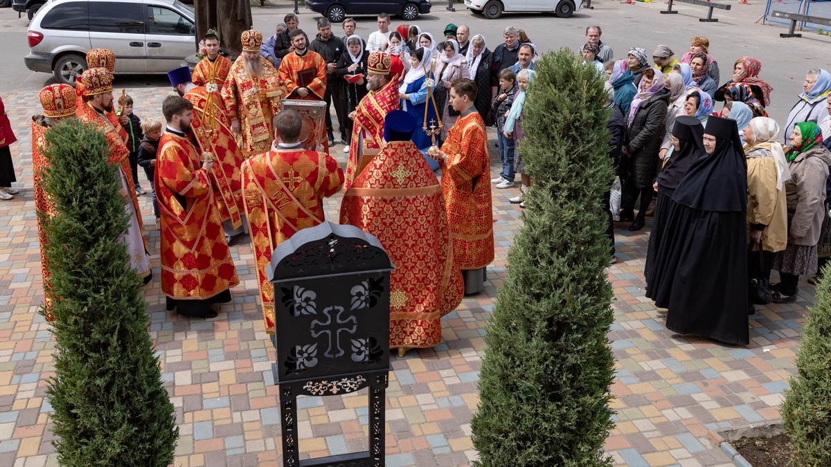 По окончании Литургии духовенство и верующий народ, во главе с архипастырем, прошли крестным ходом вокруг храма, воспевая Воскресшего Христа и Его Пречистую Матерь.