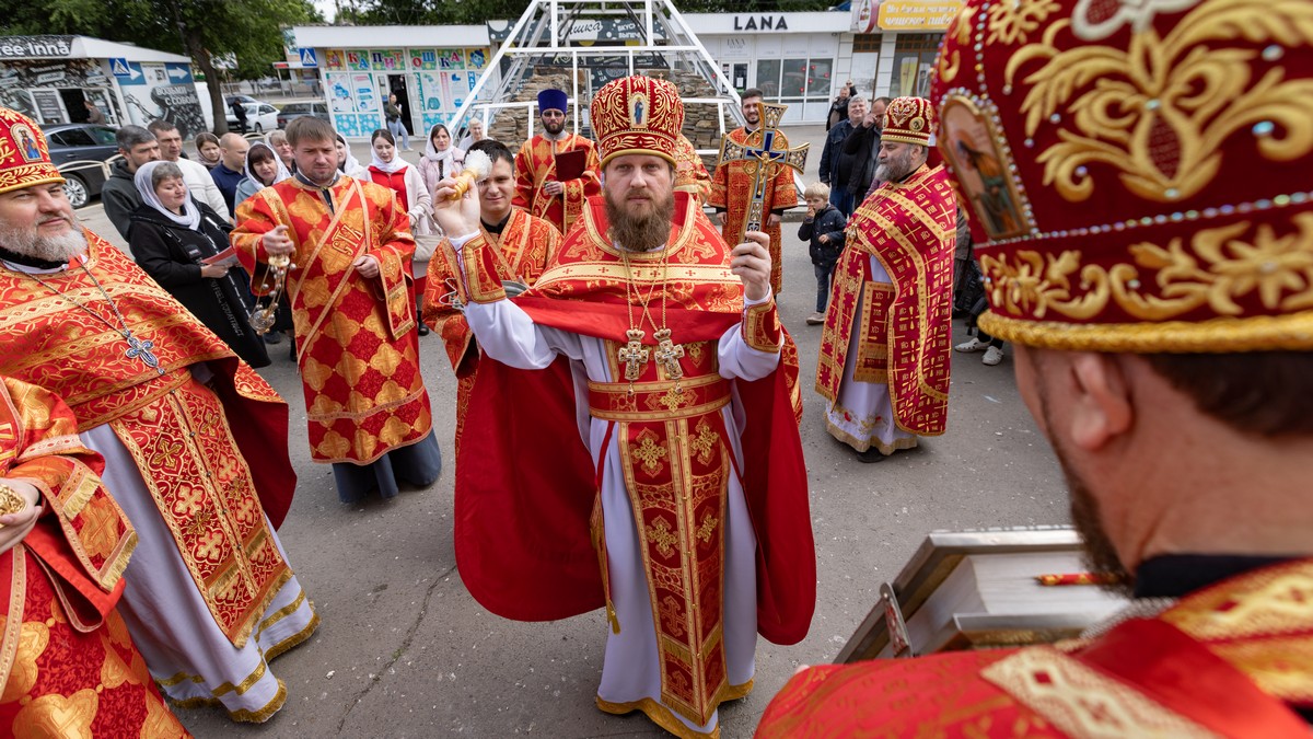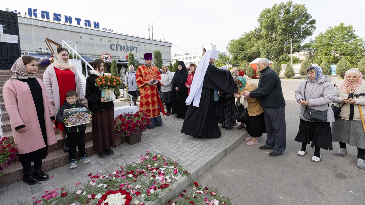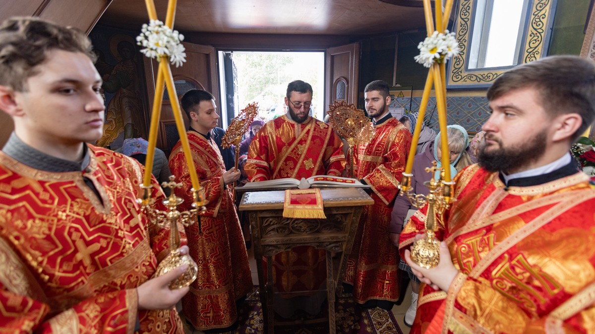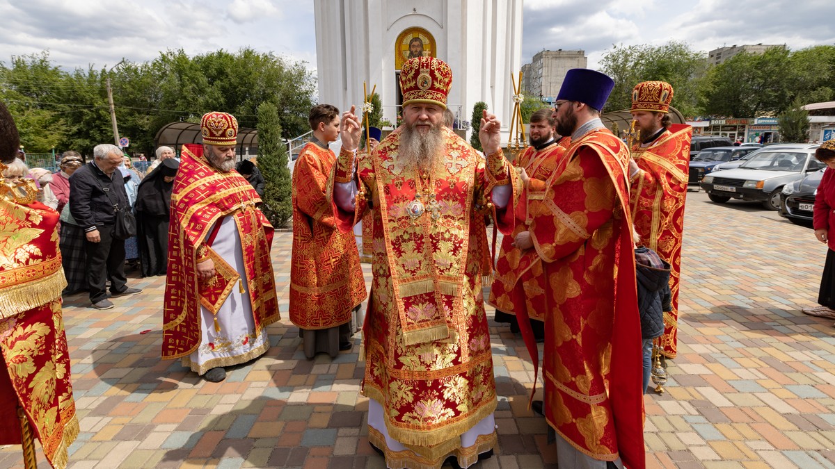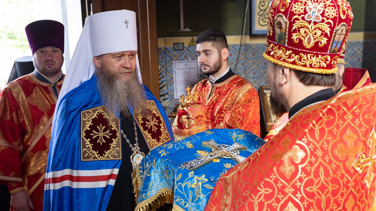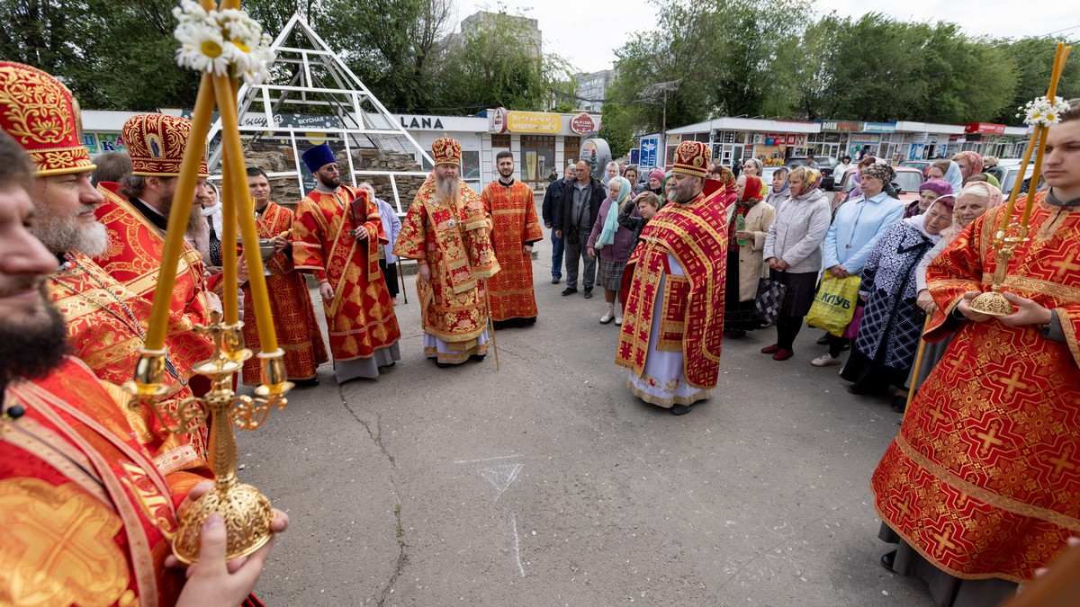 По окончании Литургии духовенство и верующий народ, во главе с архипастырем, прошли крестным ходом вокруг храма, воспевая Воскресшего Христа и Его Пречистую Матерь.