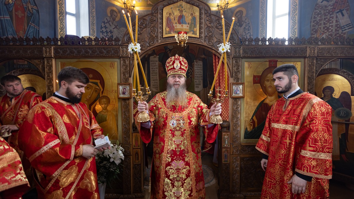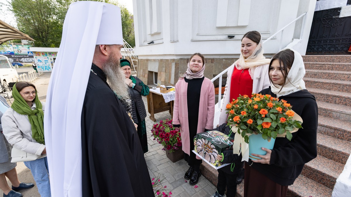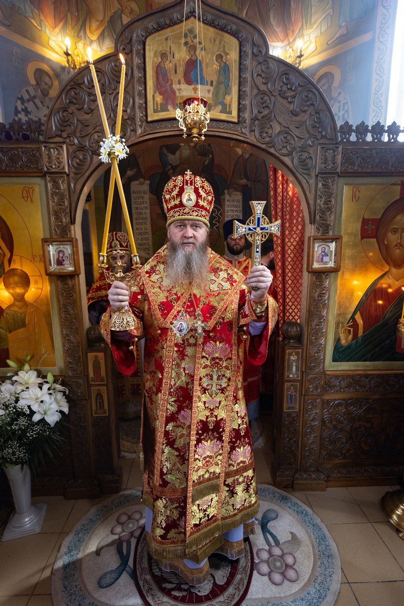 В завершение богослужения, владыка Пантелеимон поздравил настоятеля, сослужившее духовенство и верующий народ с продолжающимся праздником Пасхи Христовой, престольным днем храма и призвал на всех Божие благословение.