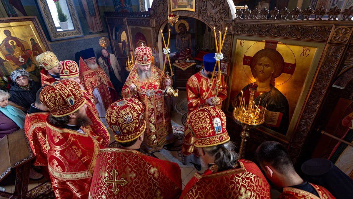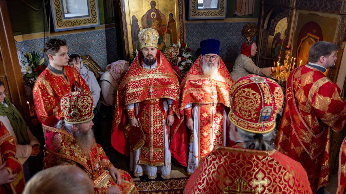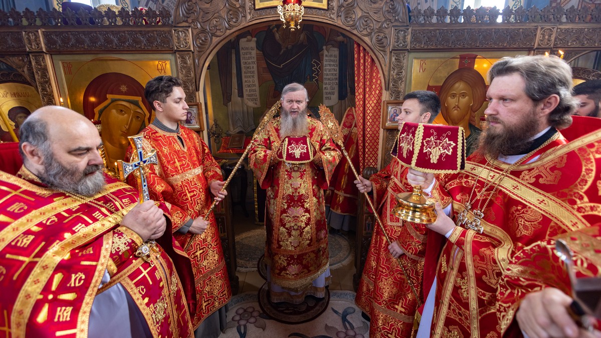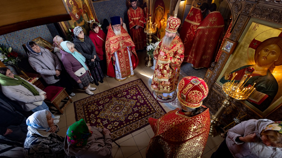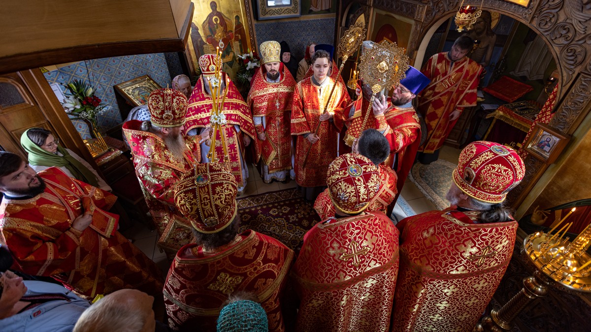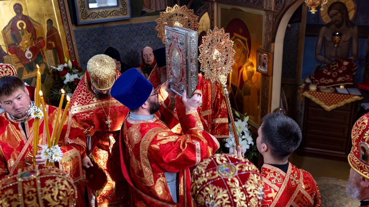 После сугубой ектении владыка вознес молитву о мире на Святой Земле, молитву о Святой Руси, и молитву об исцелении болящих.