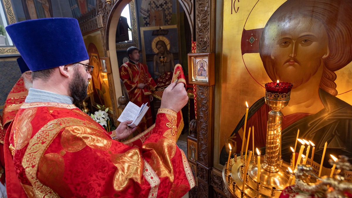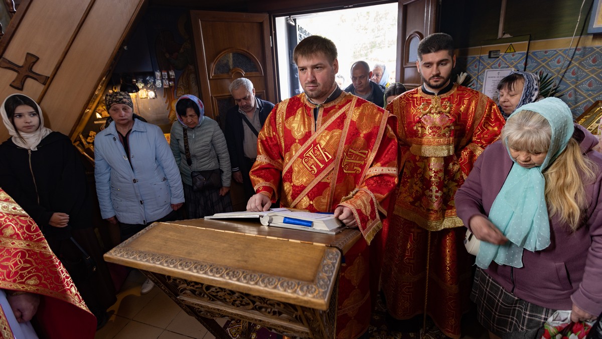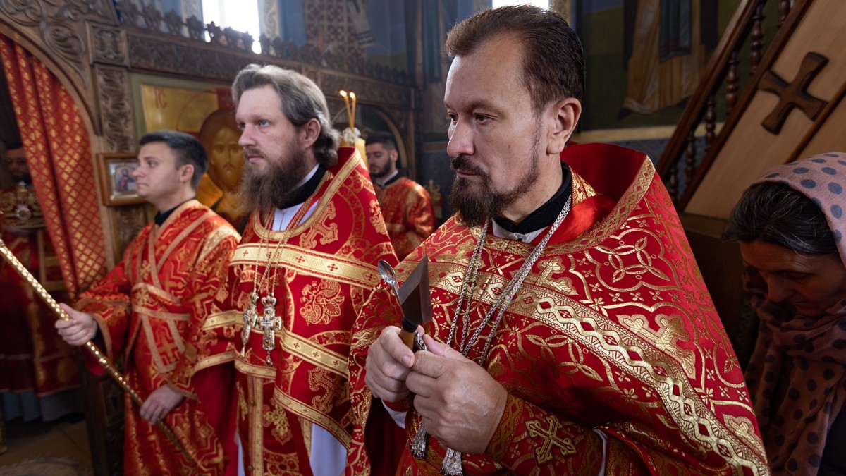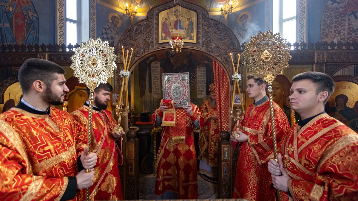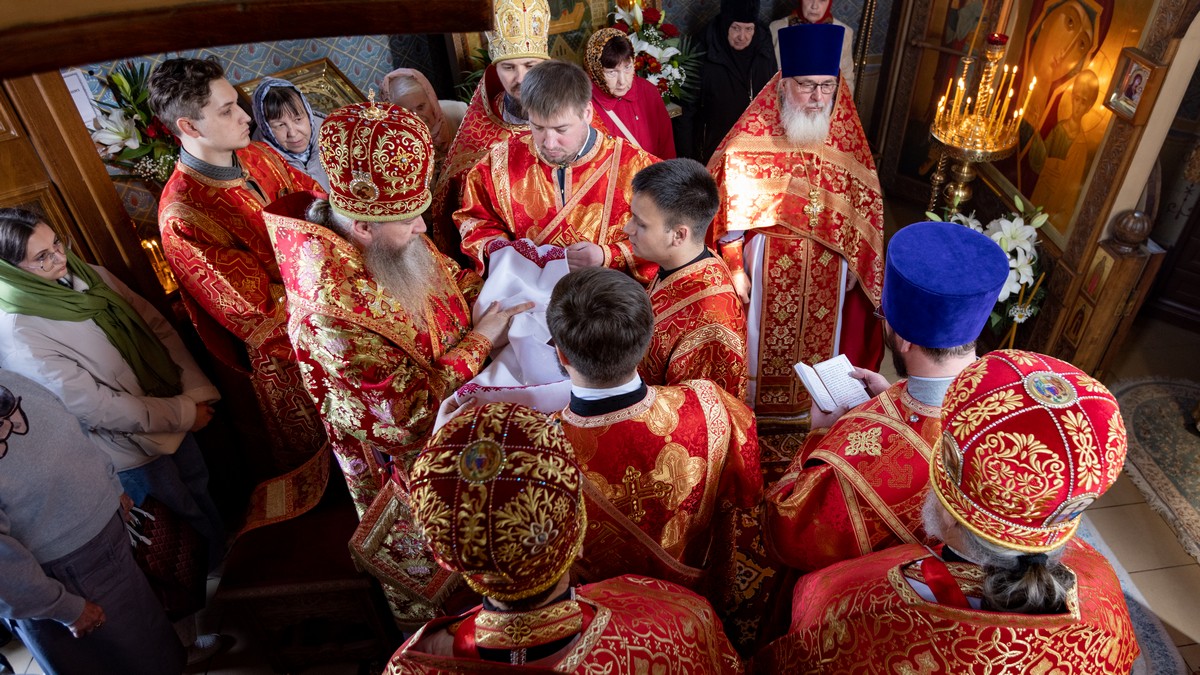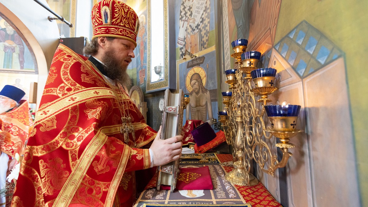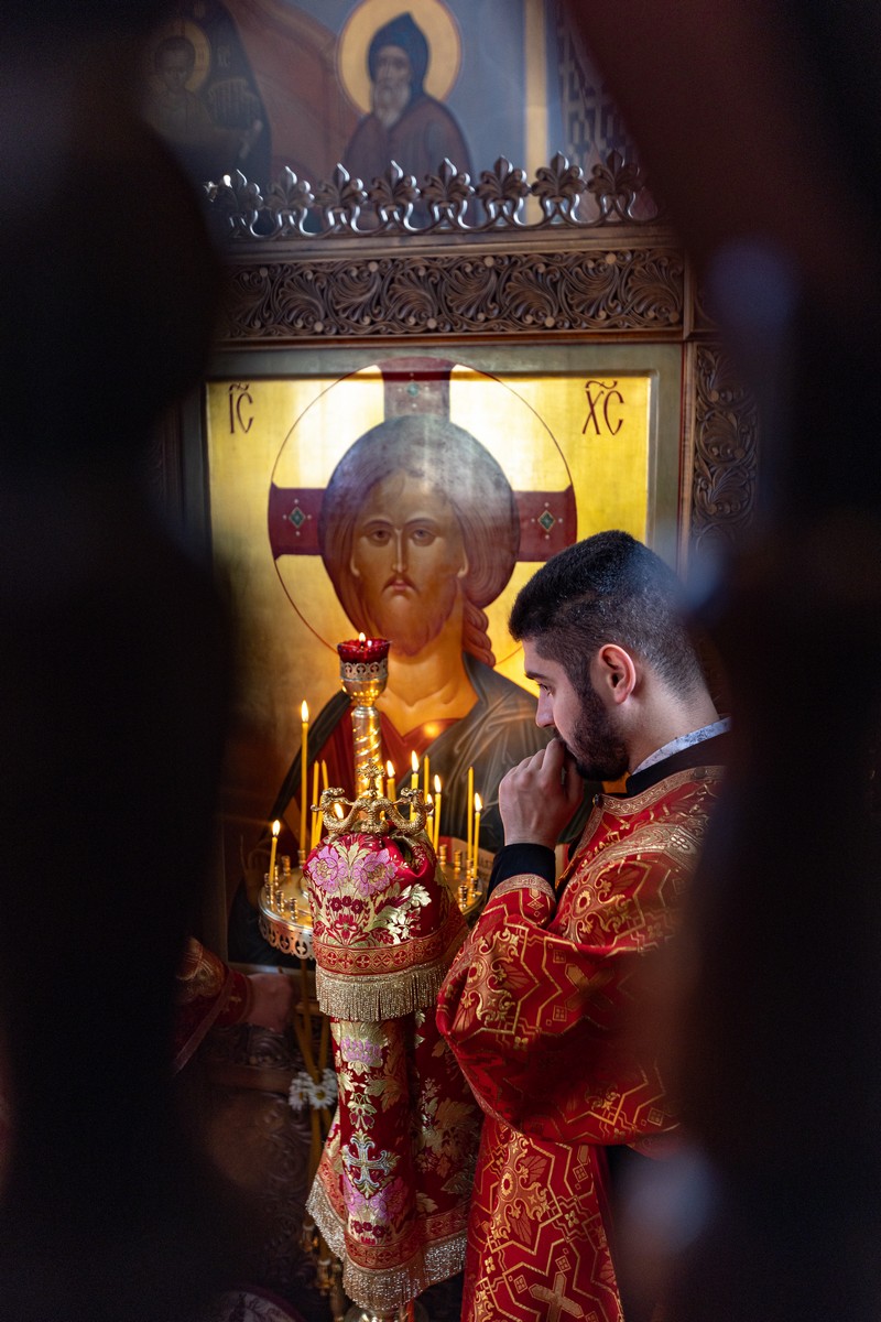 После сугубой ектении владыка вознес молитву о мире на Святой Земле, молитву о Святой Руси, и молитву об исцелении болящих.