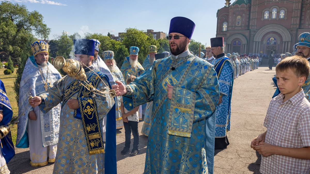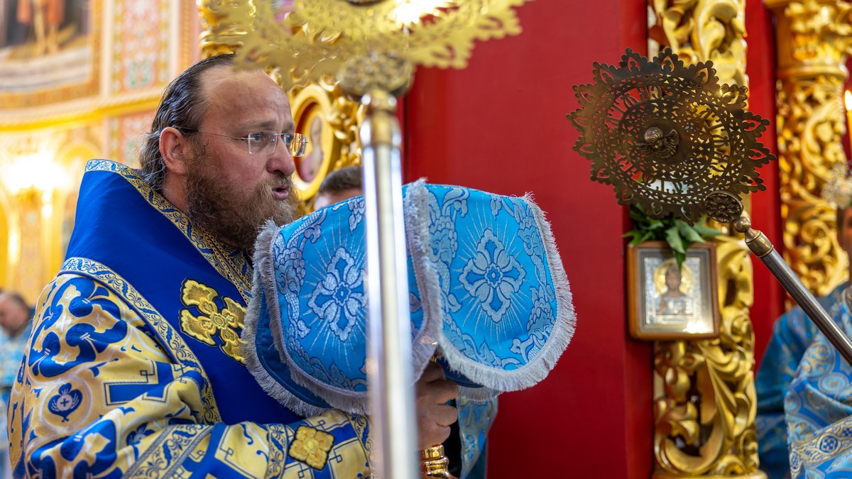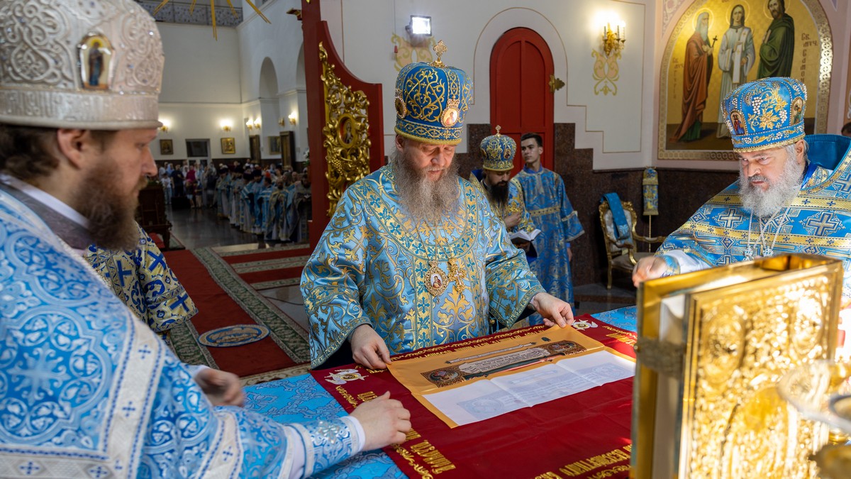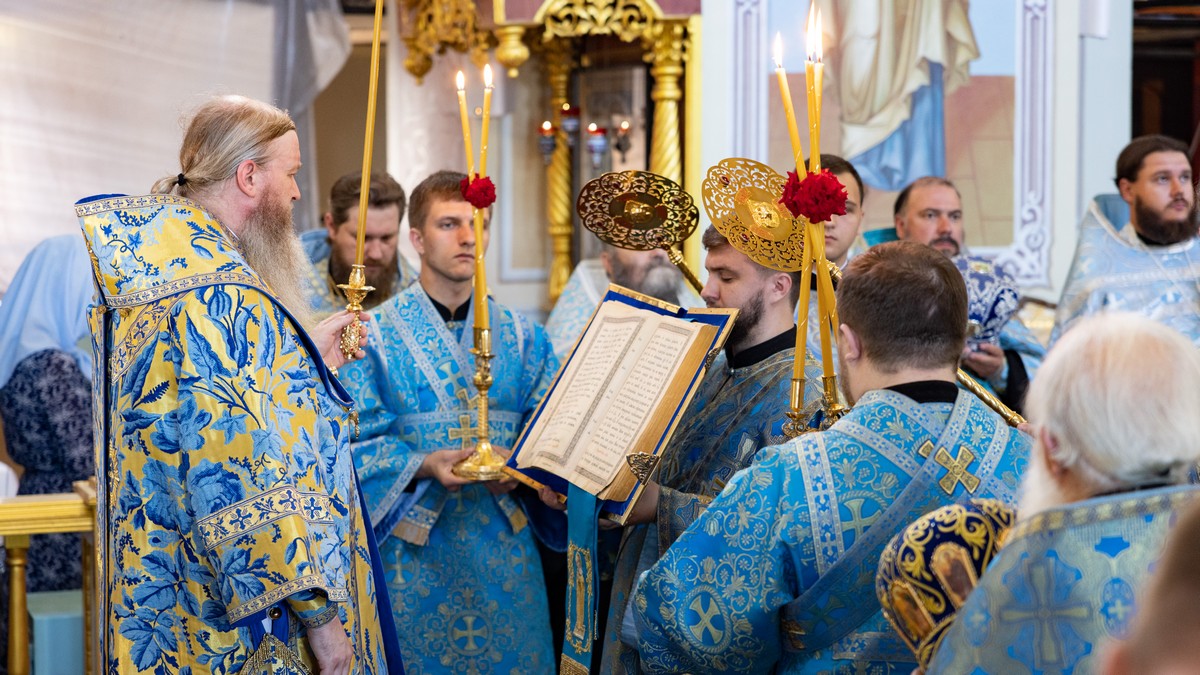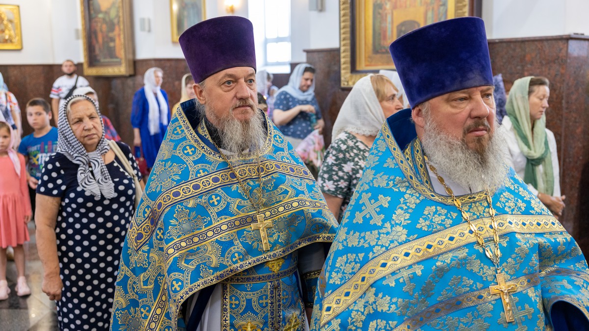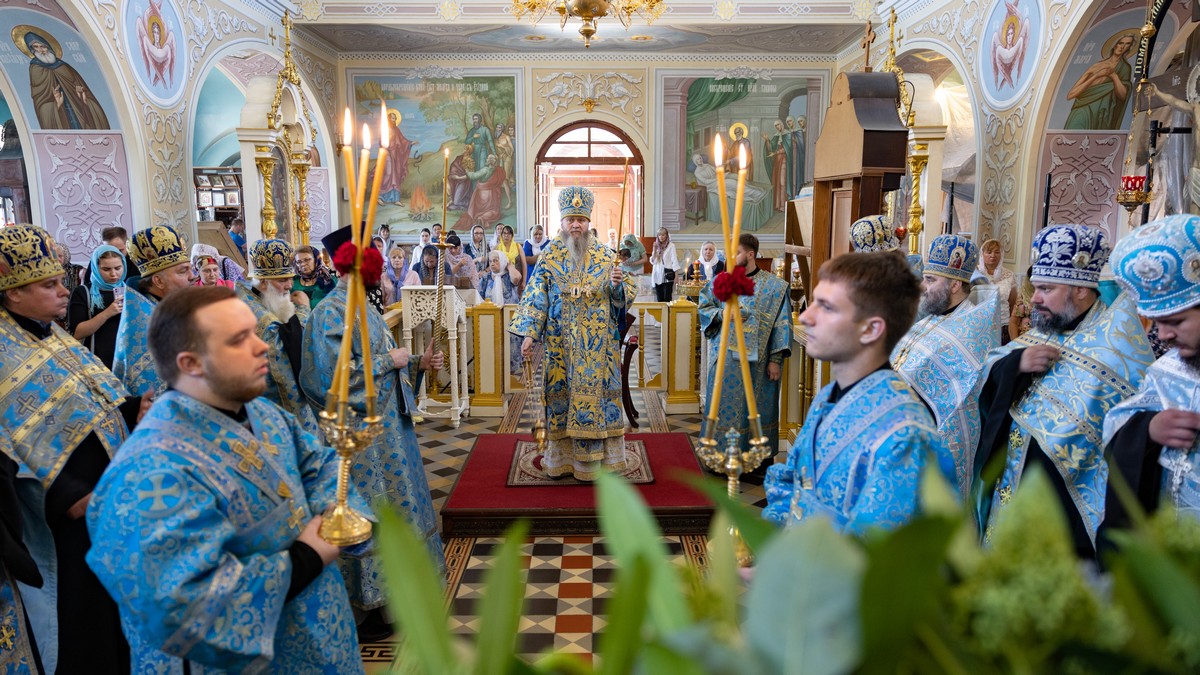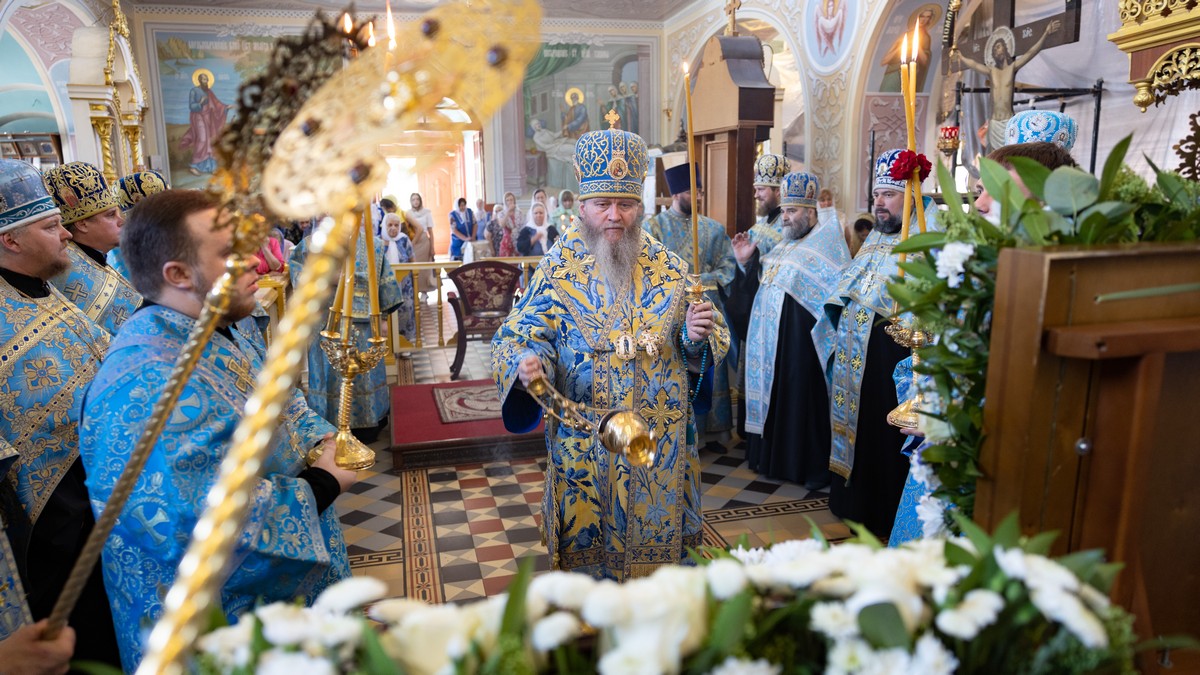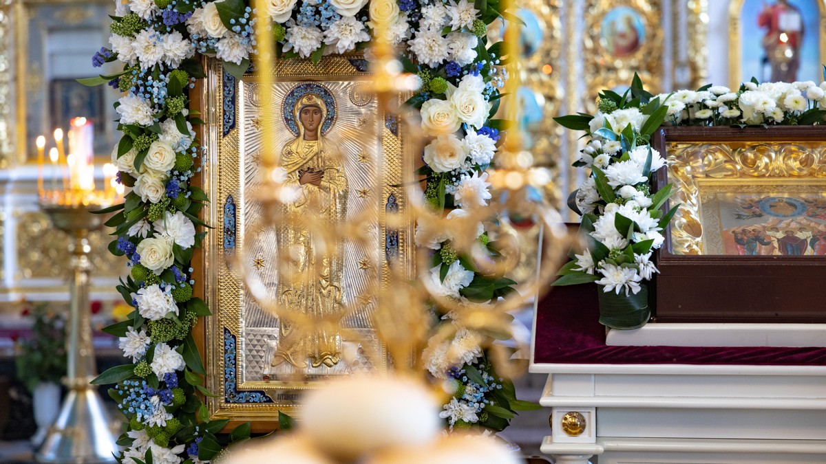 По окончании Литургии архипастыри, духовенство и верующий народ прошли крестным ходом вокруг собора, прославляя в молитвенных песнопениях Царицу Небесную.