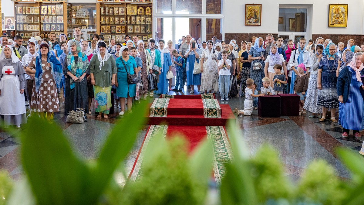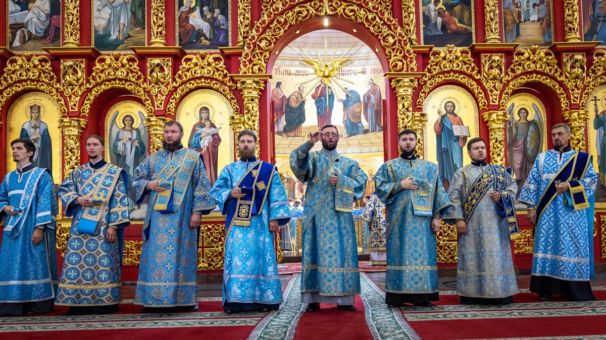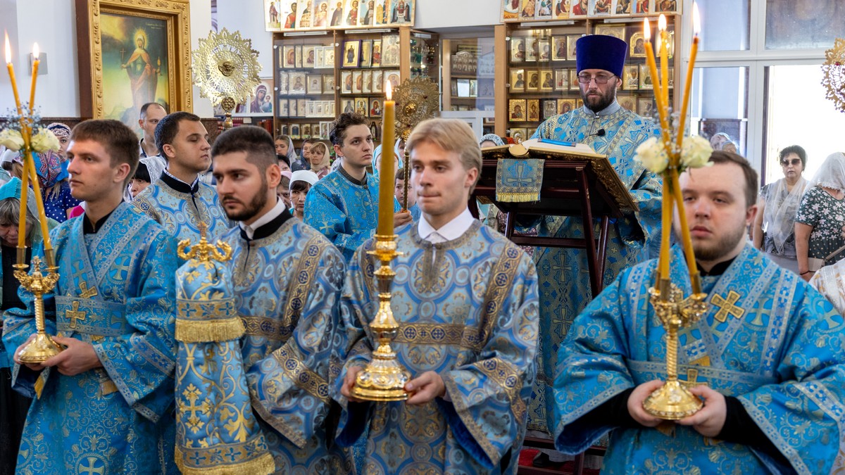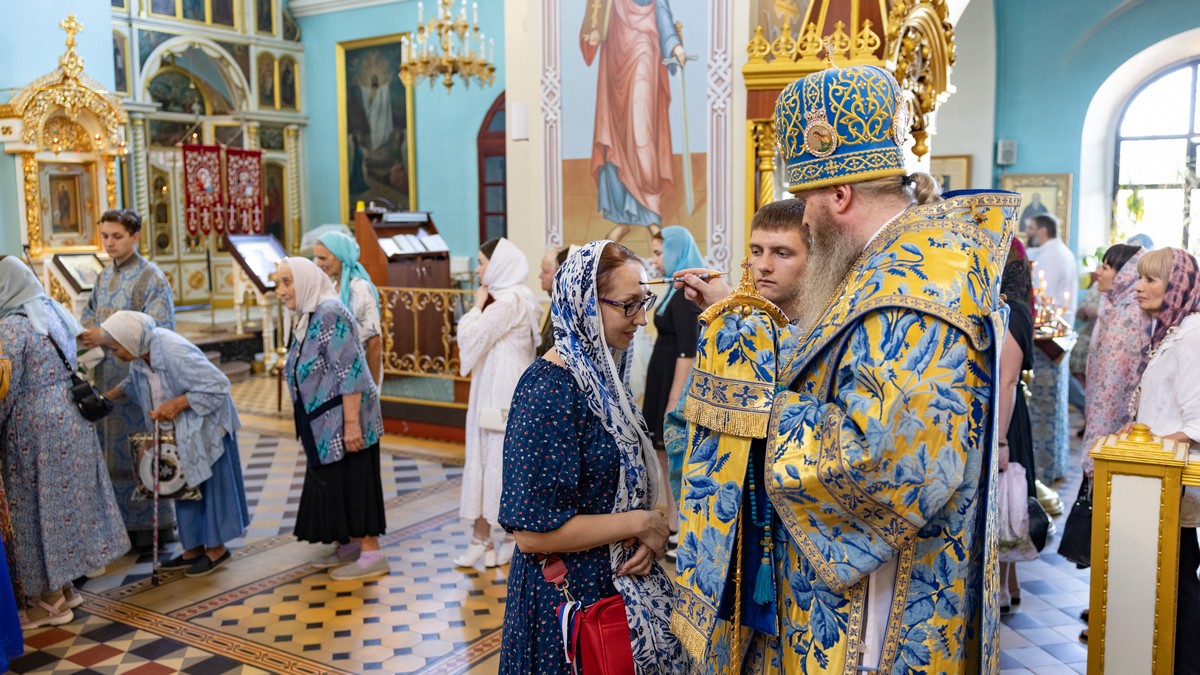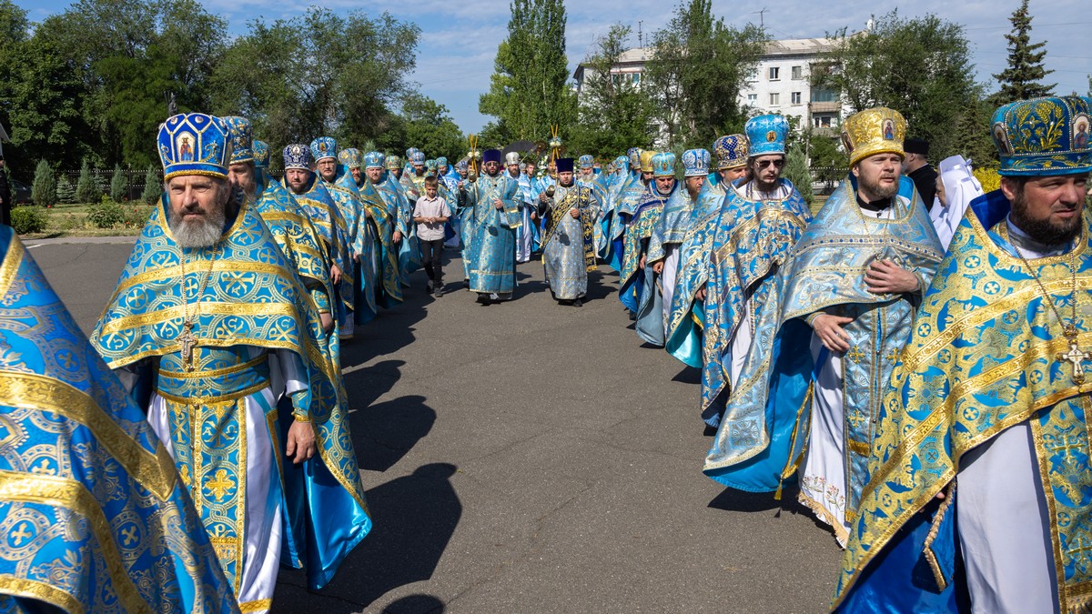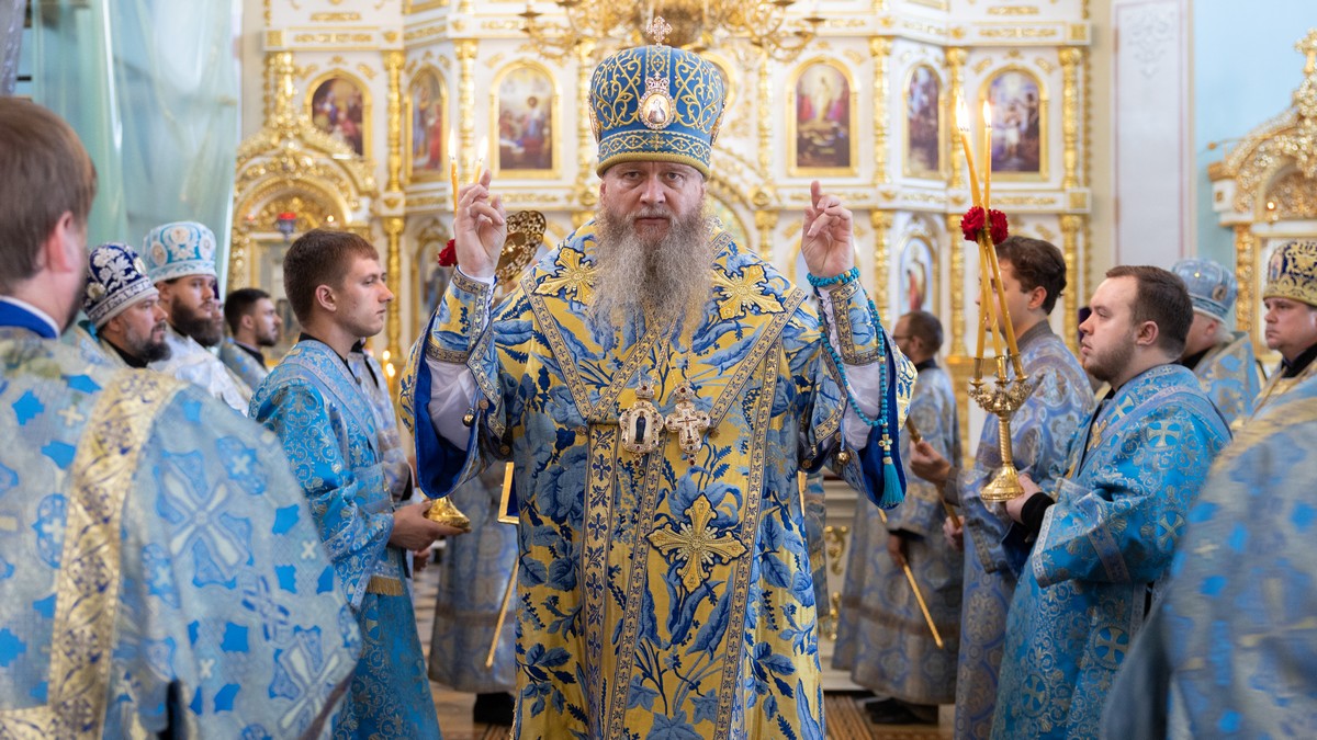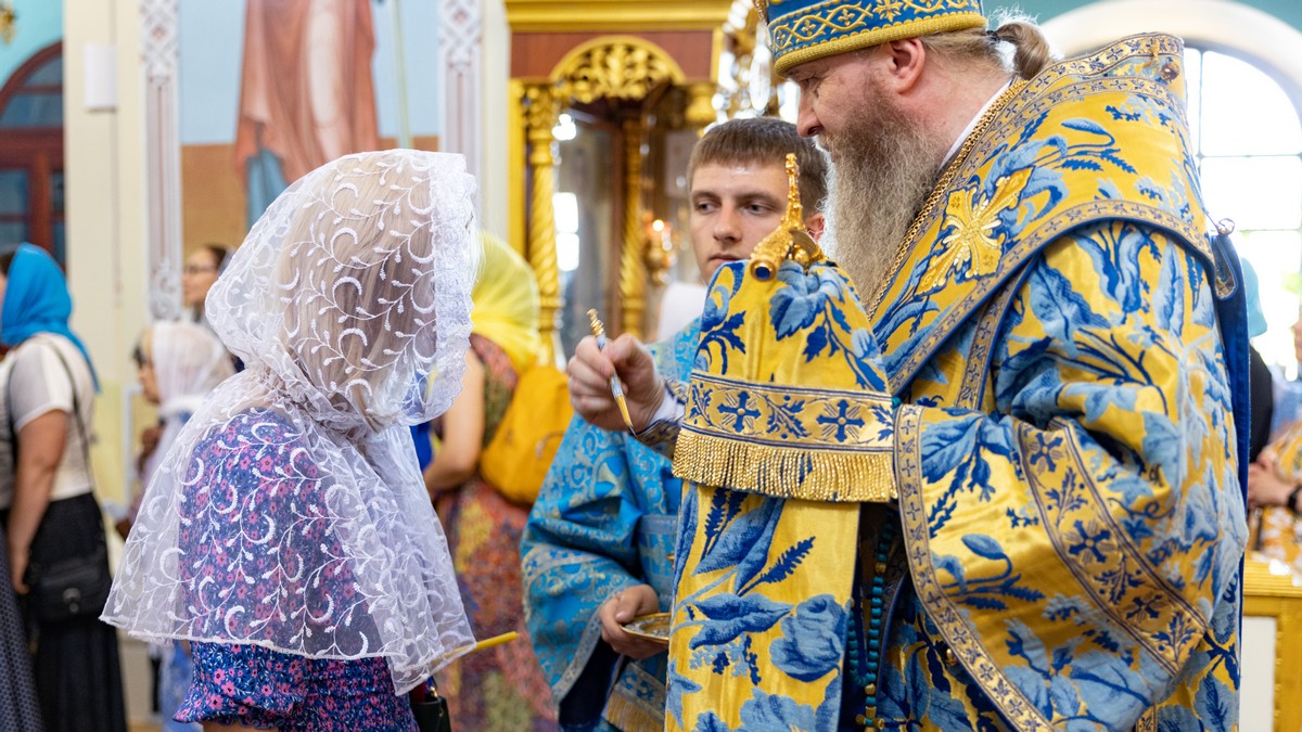 По окончании Литургии архипастыри, духовенство и верующий народ прошли крестным ходом вокруг собора, прославляя в молитвенных песнопениях Царицу Небесную.
