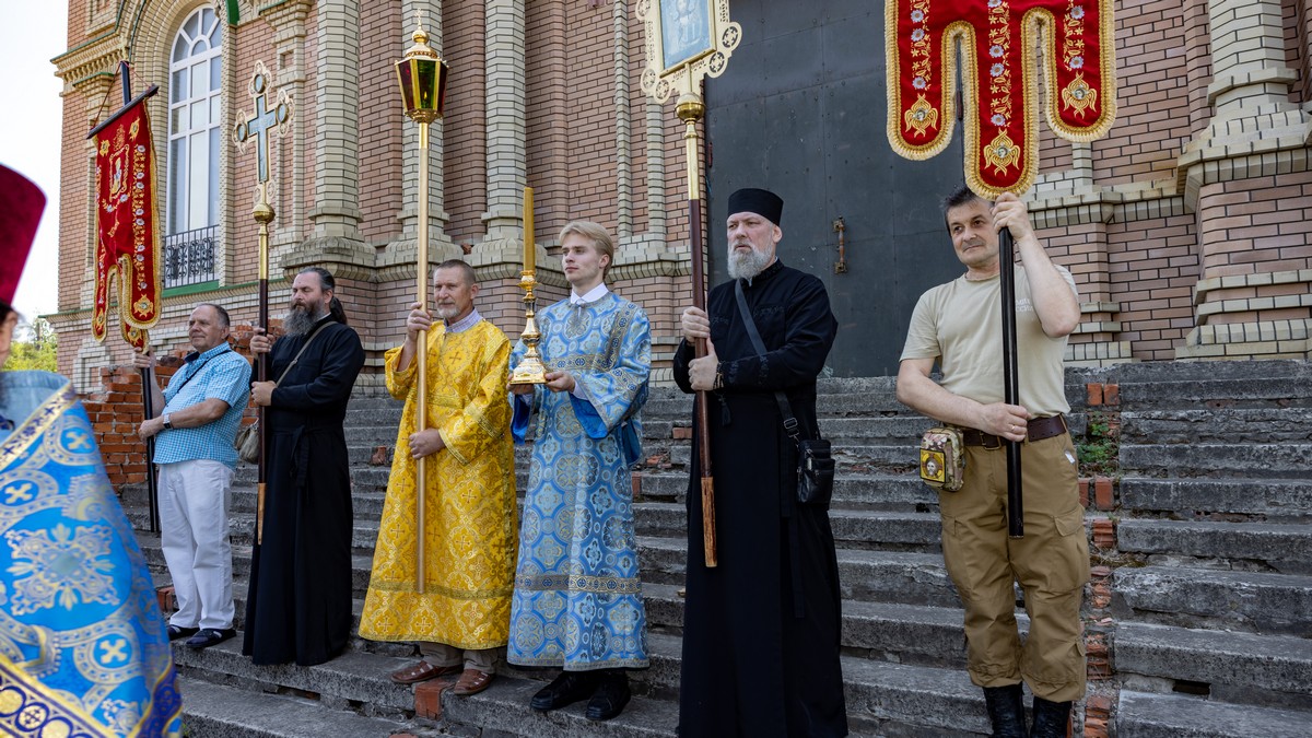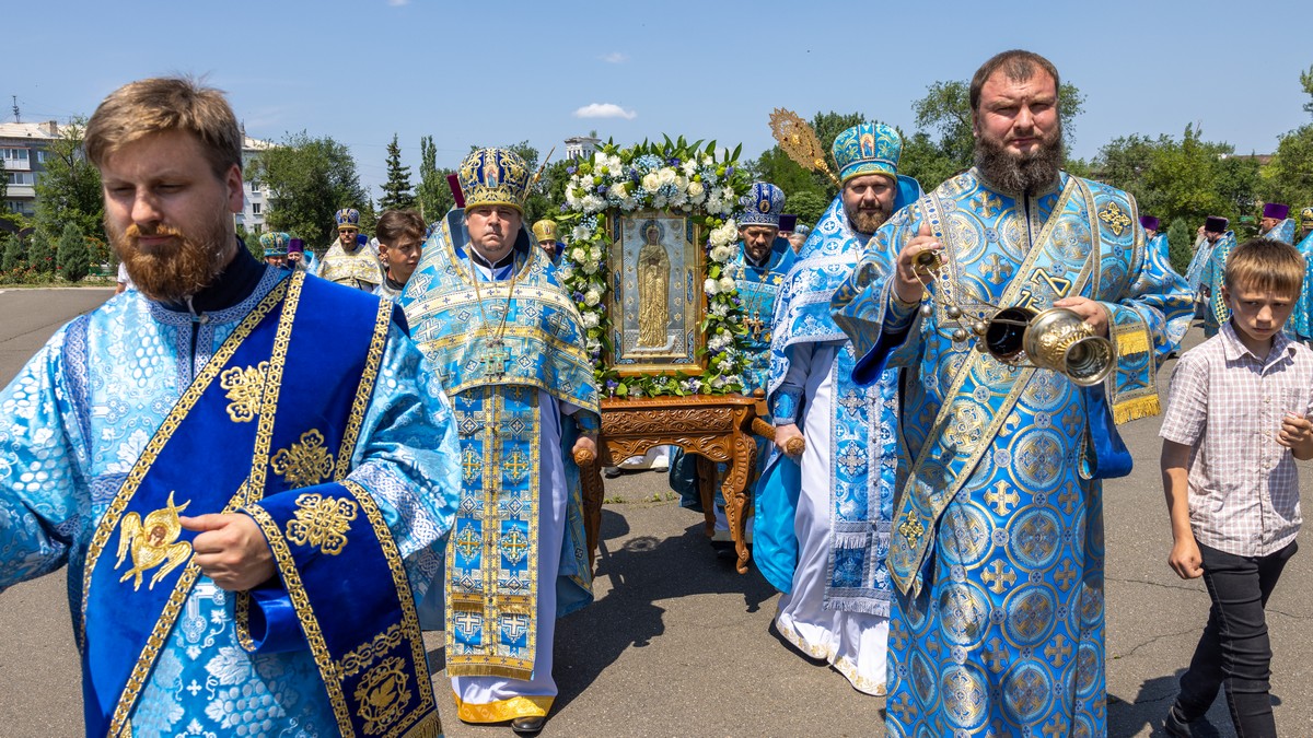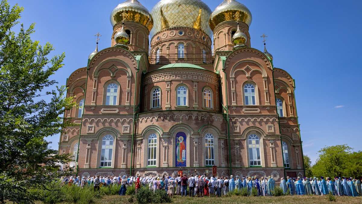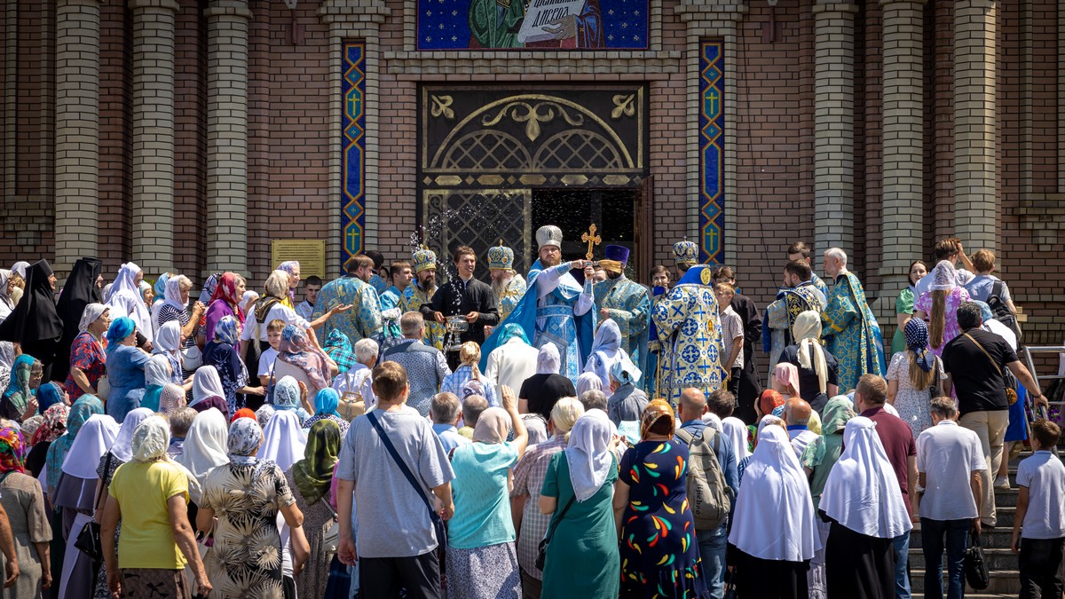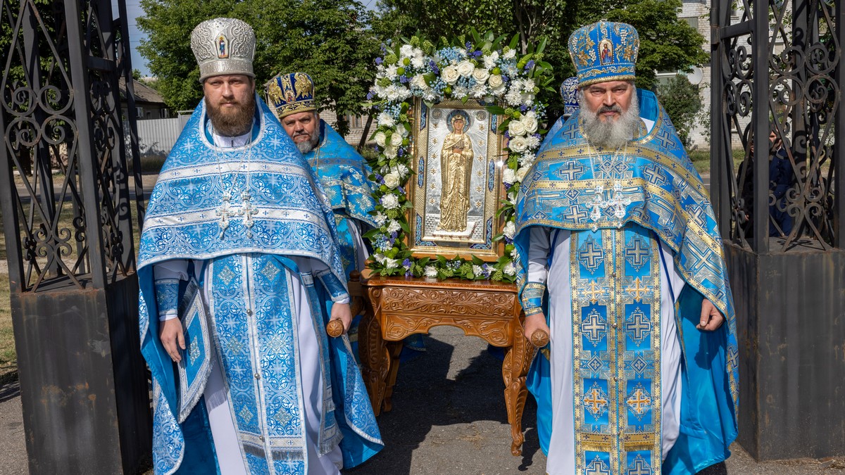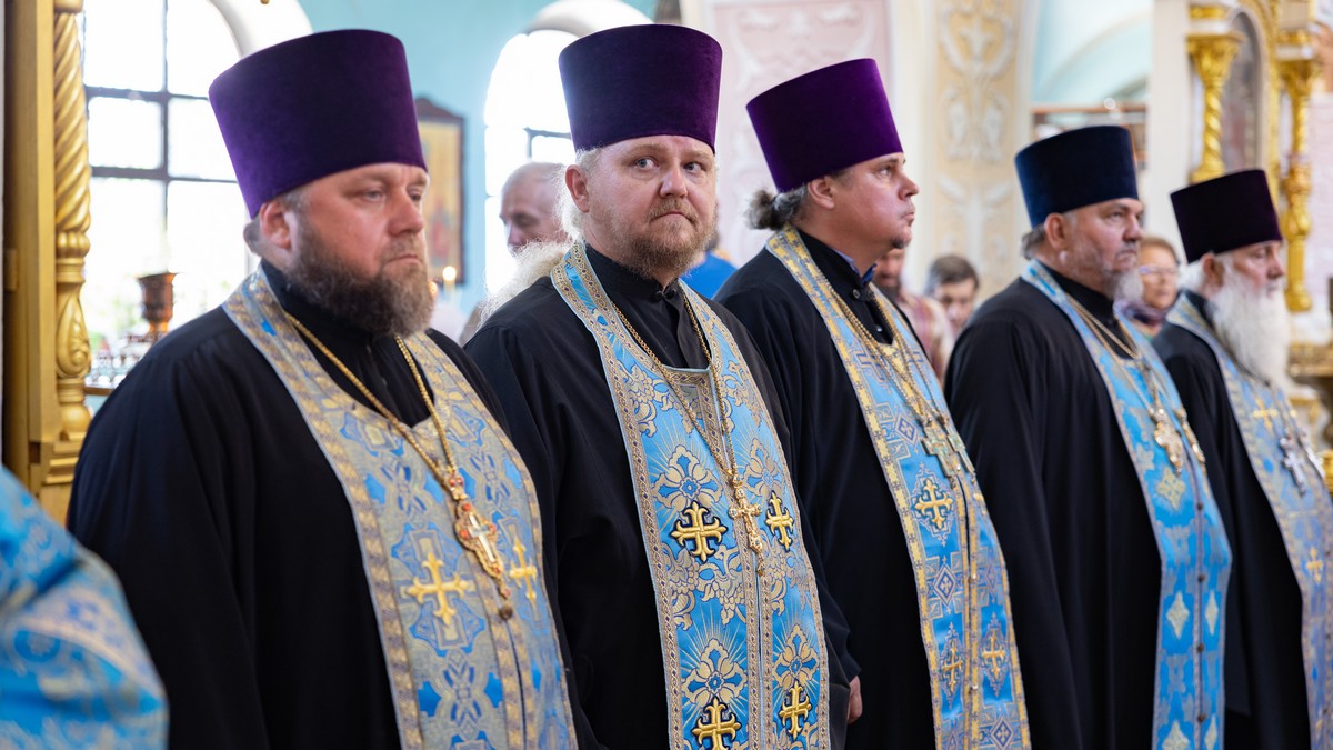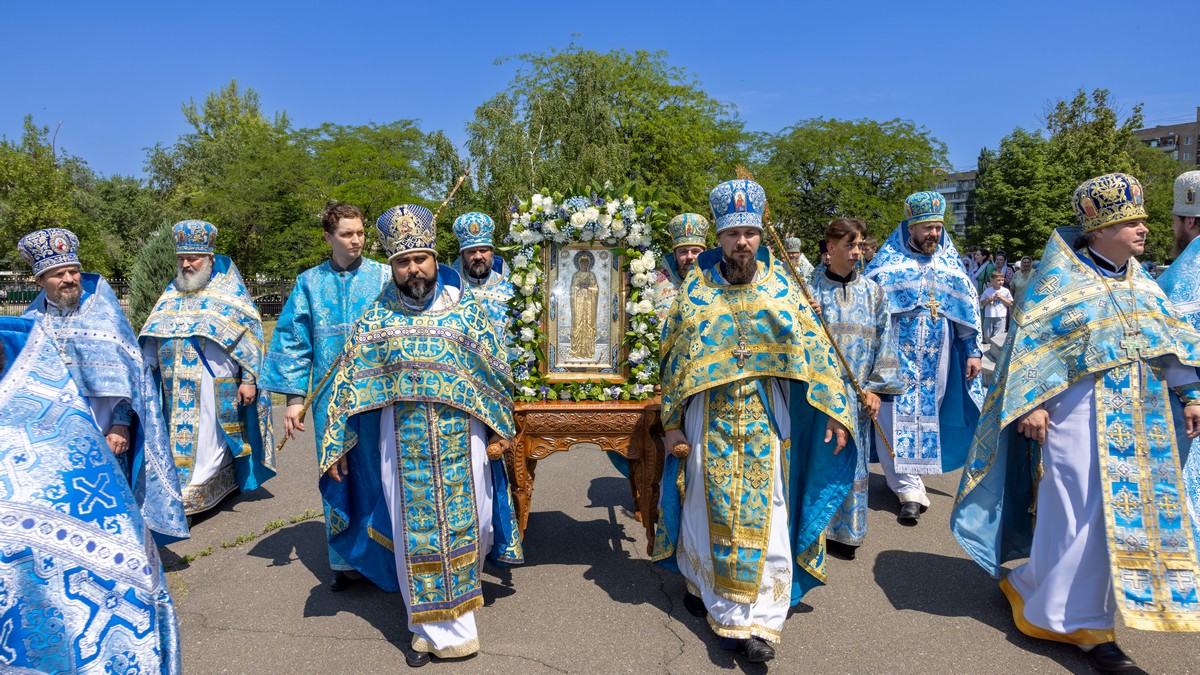 По окончании Литургии архипастыри, духовенство и верующий народ прошли крестным ходом вокруг собора, прославляя в молитвенных песнопениях Царицу Небесную.