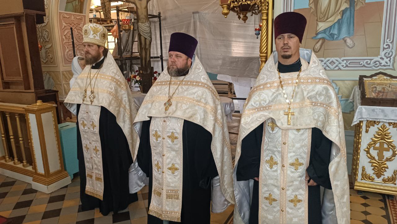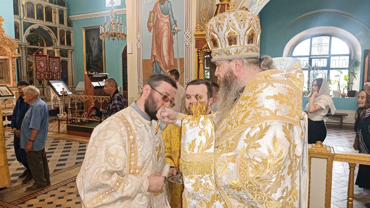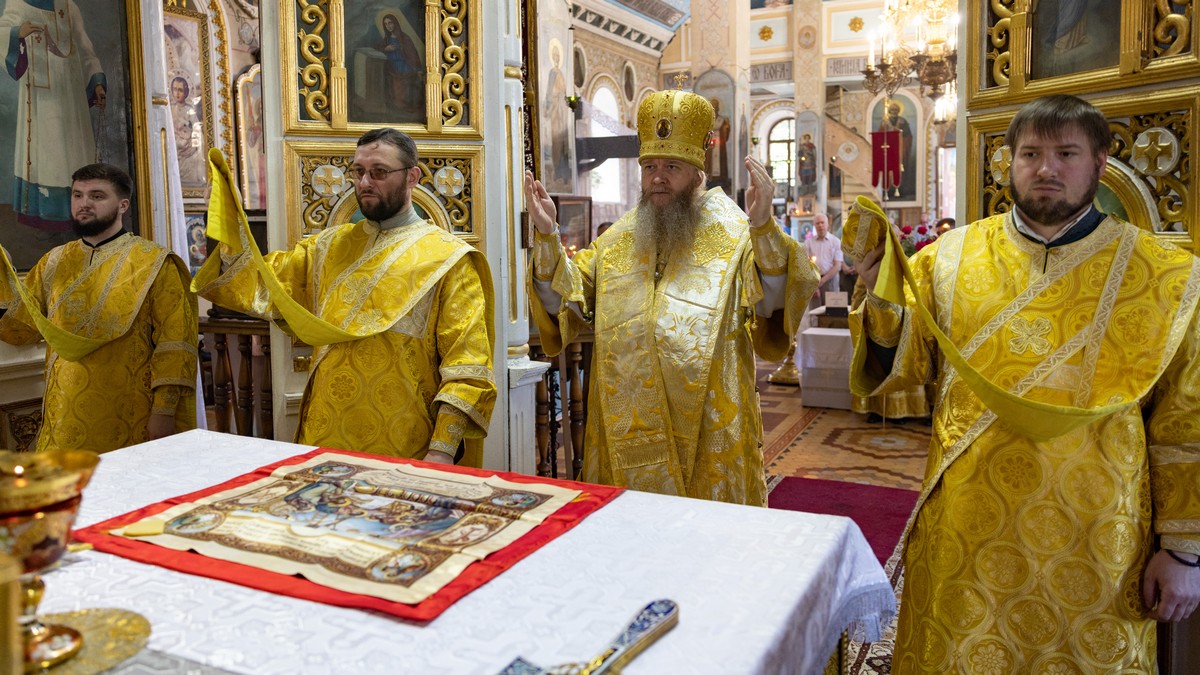 За Божественной литургией Его Высокопреосвященству сослужил секретарь епархии прот. Андрей Зозуля, благочинный центрального благочиннического округа прот. Александр Пономарев, а также соборное духовенство.