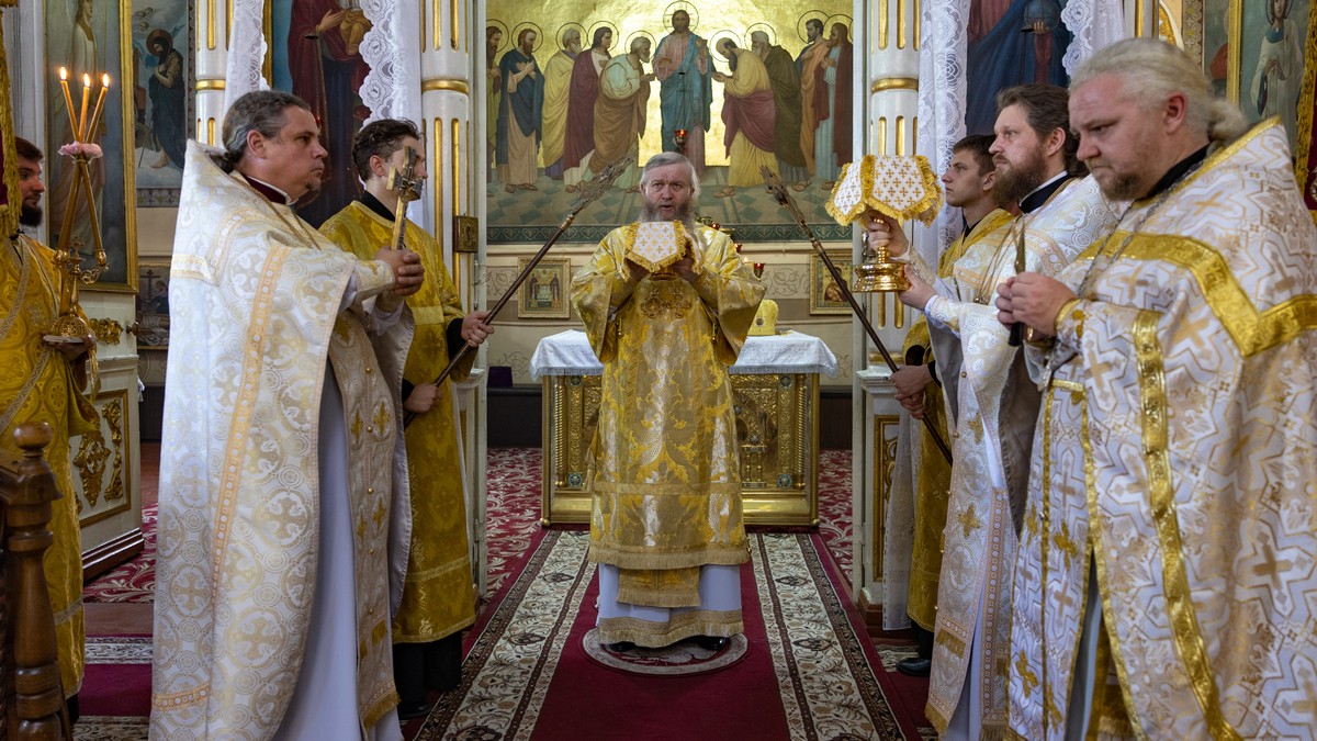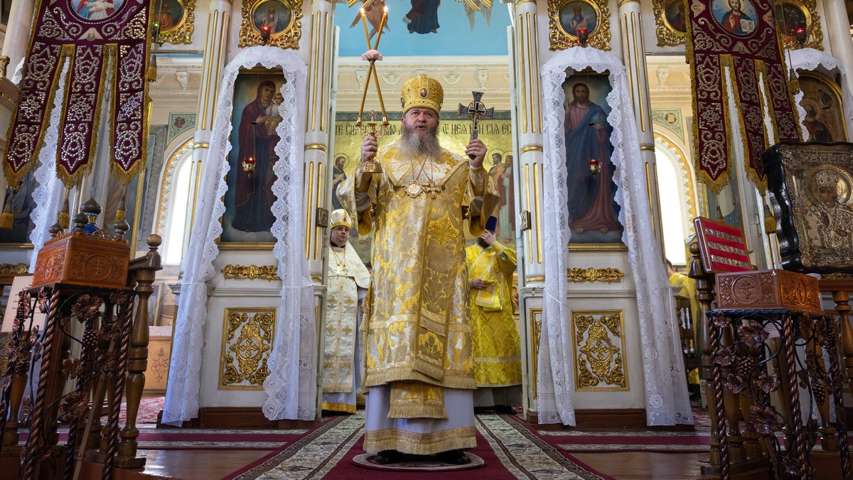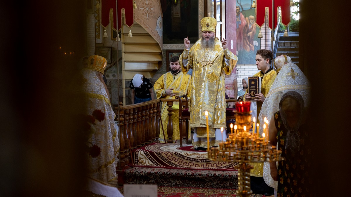 Накануне воскресного дня, архипастырь совершил Всенощное бдение в Свято-Петро-Павловском кафедральном соборе.
