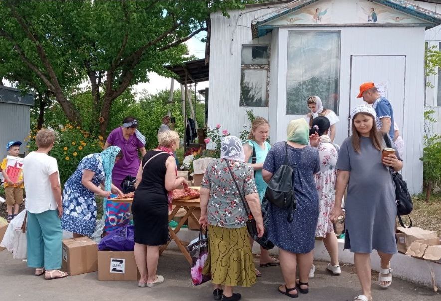 16 июня, на территории Свято-Вознесенского храма города Луганска, по инициативе епархиального отдела по Делам семьи была создана площадка для раздачи гуманитарной помощи нуждающимся.