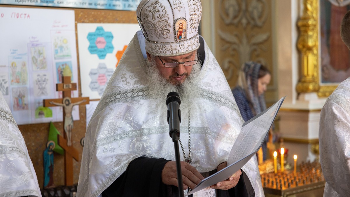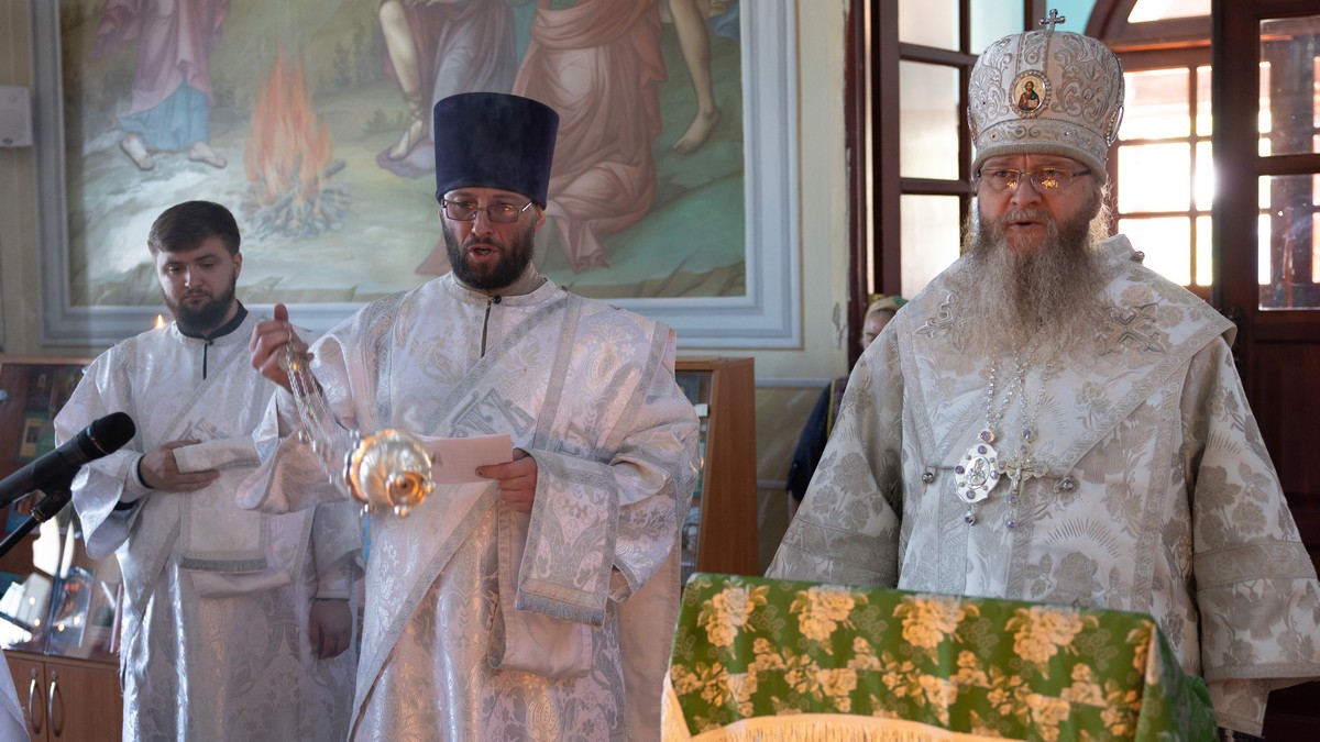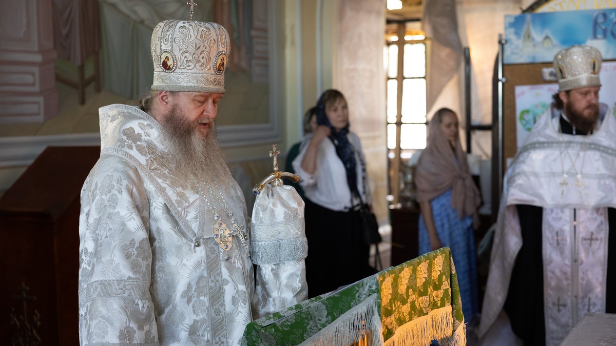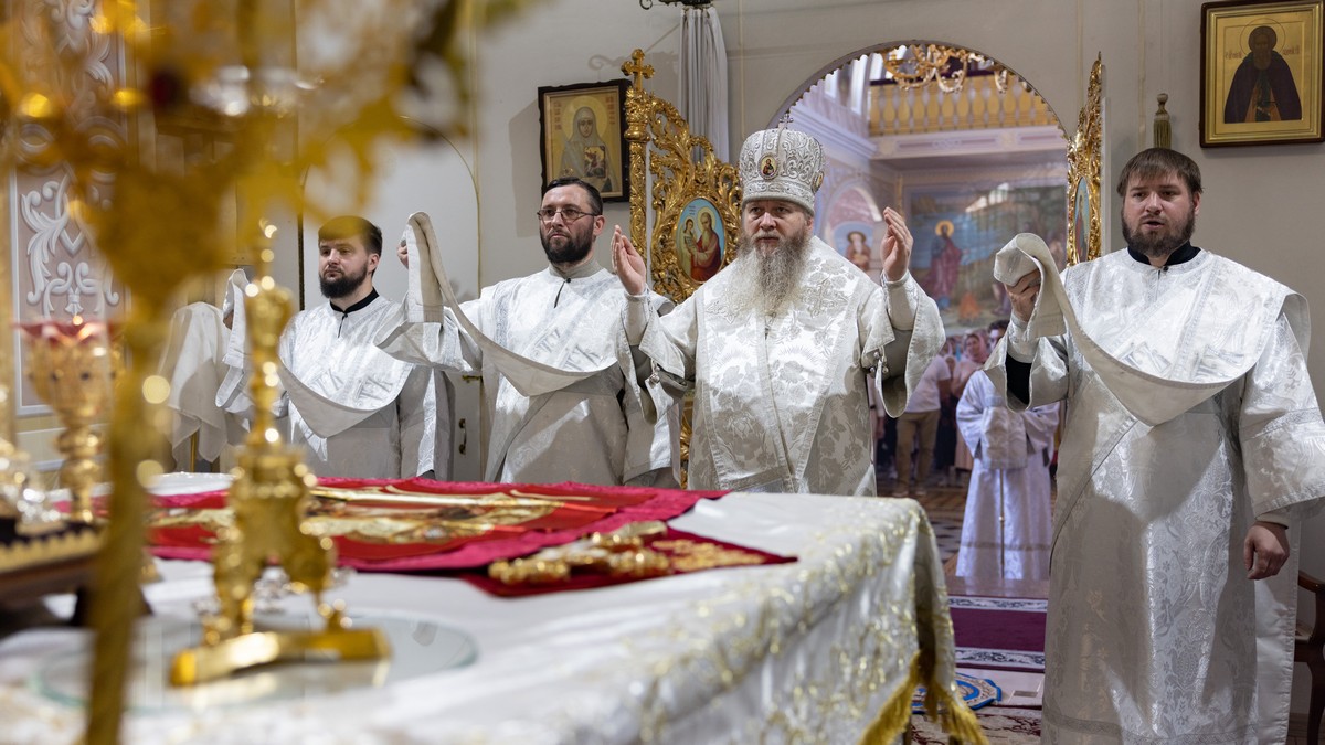 За Литургией Его Высокопреосвященству сослужило духовенство кафедрального собора.