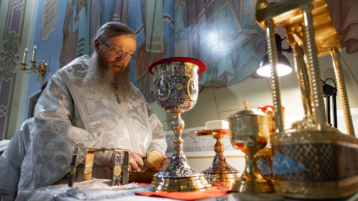 После сугубой ектении владыка вознес молитву о мире на Святой Земле, молитву о Святой Руси, и молитву об исцелении болящих.