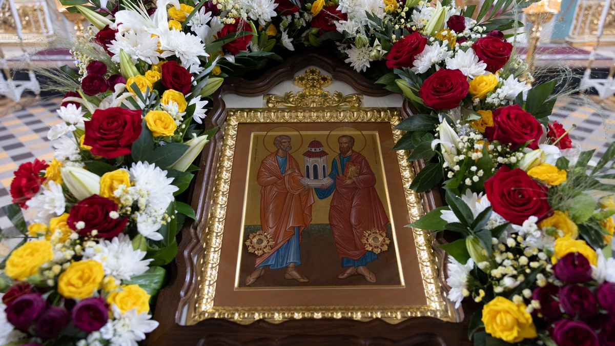После Евангельского чтения, владыка произнес проповедь о жизни и трудах первоверховных апостолов.