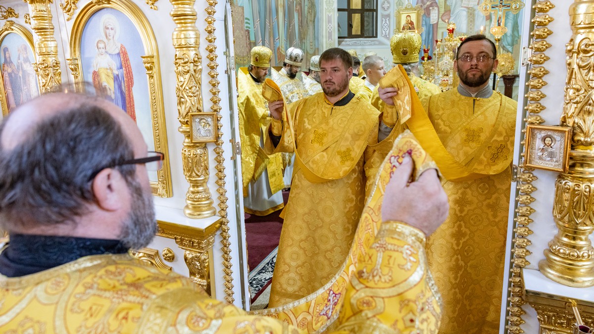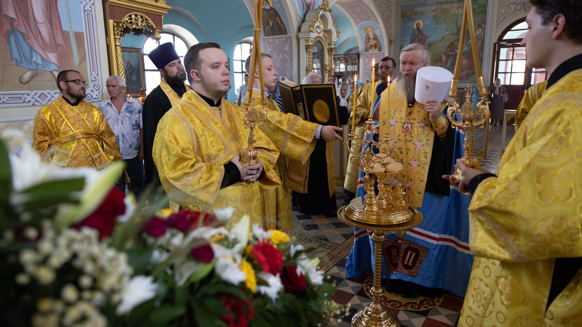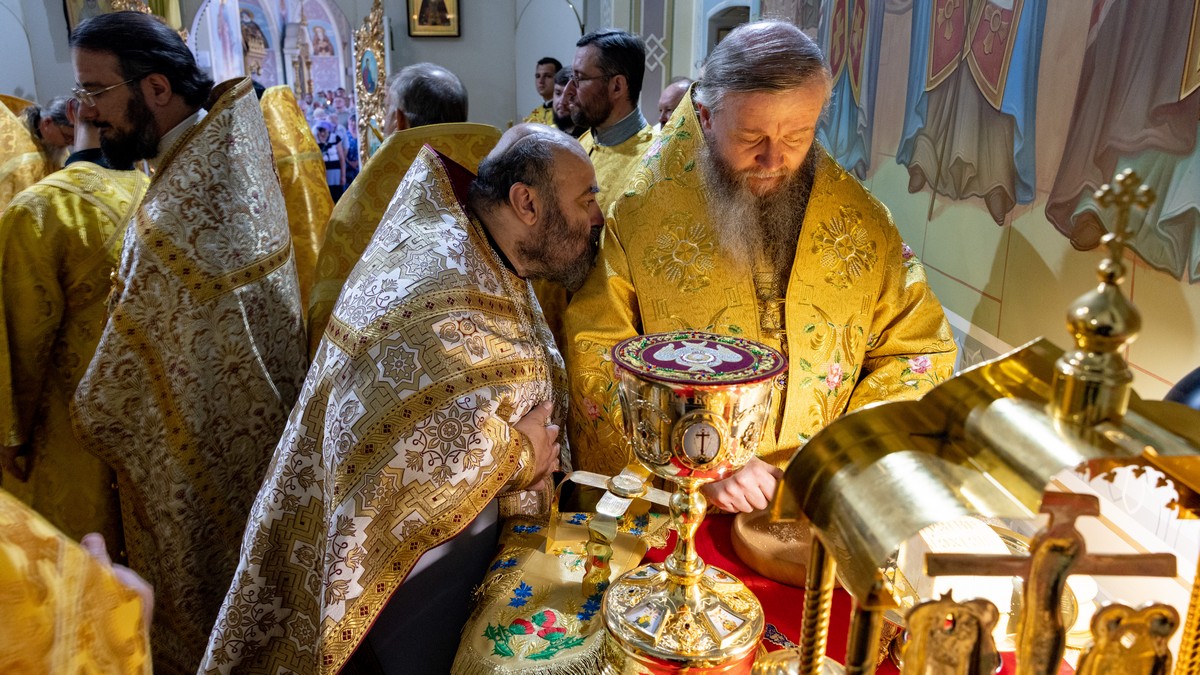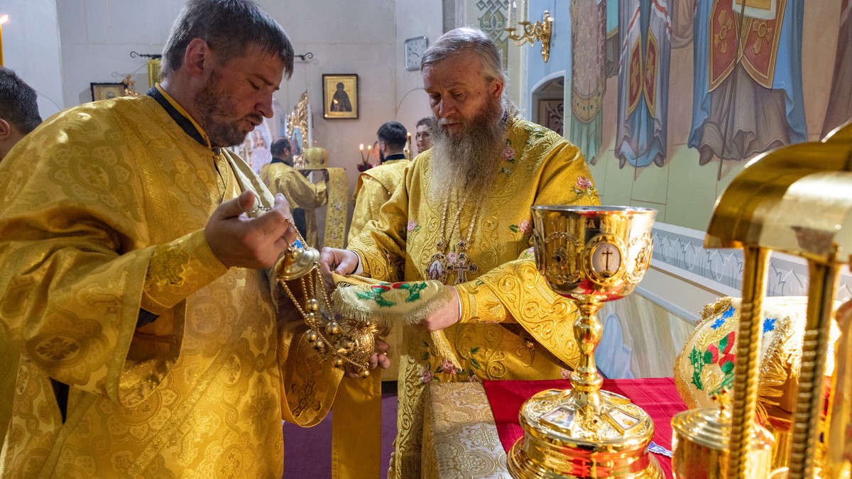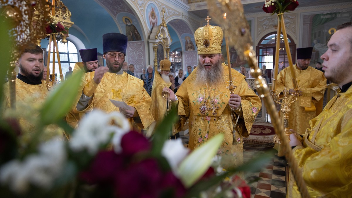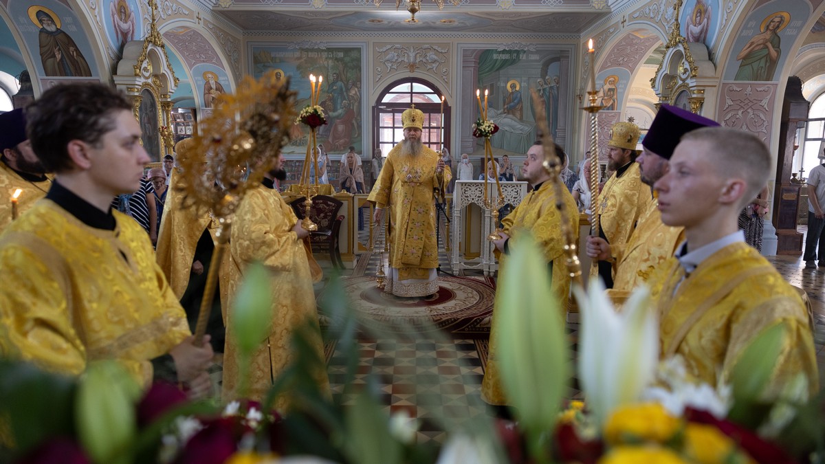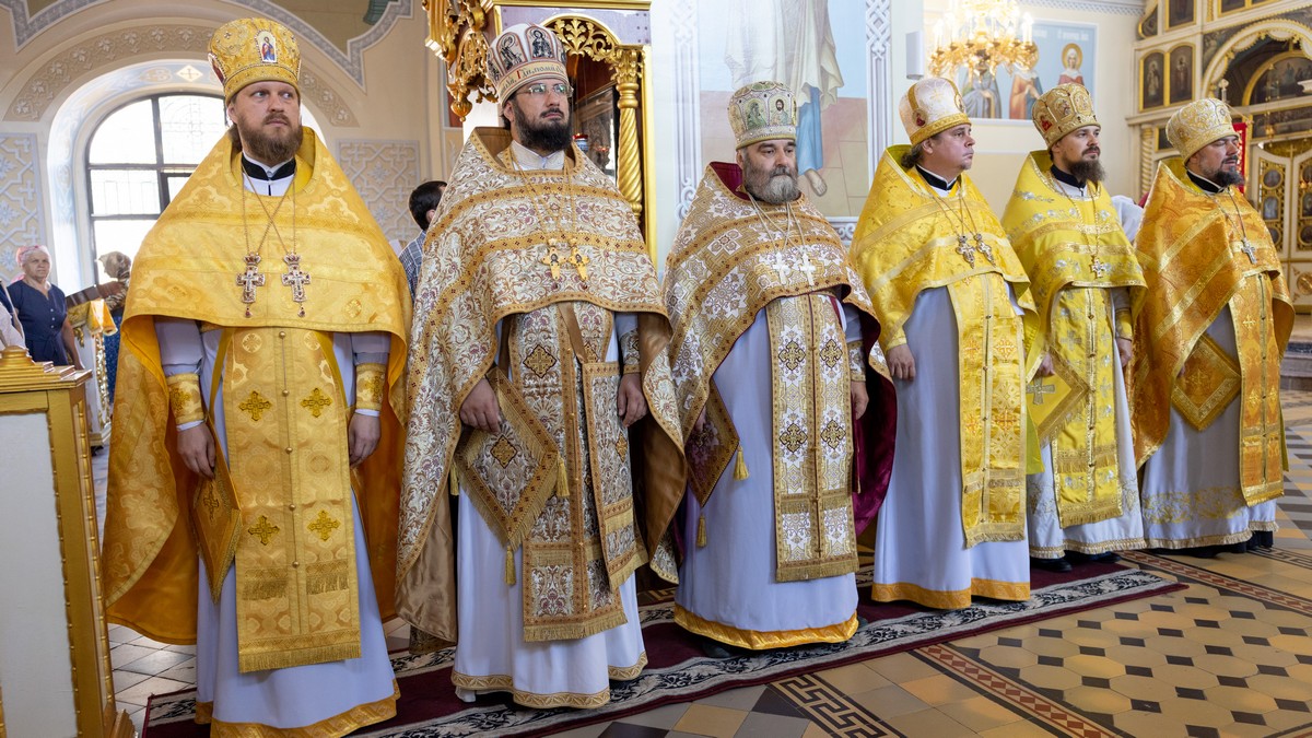 За Литургией Его Высокопреосвященству сослужил секретарь епархии прот. Андрей Зозуля, наместники монастырей, отцы благочинные, а также приглашенное духовенство.