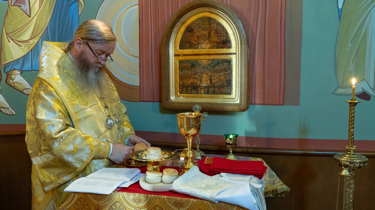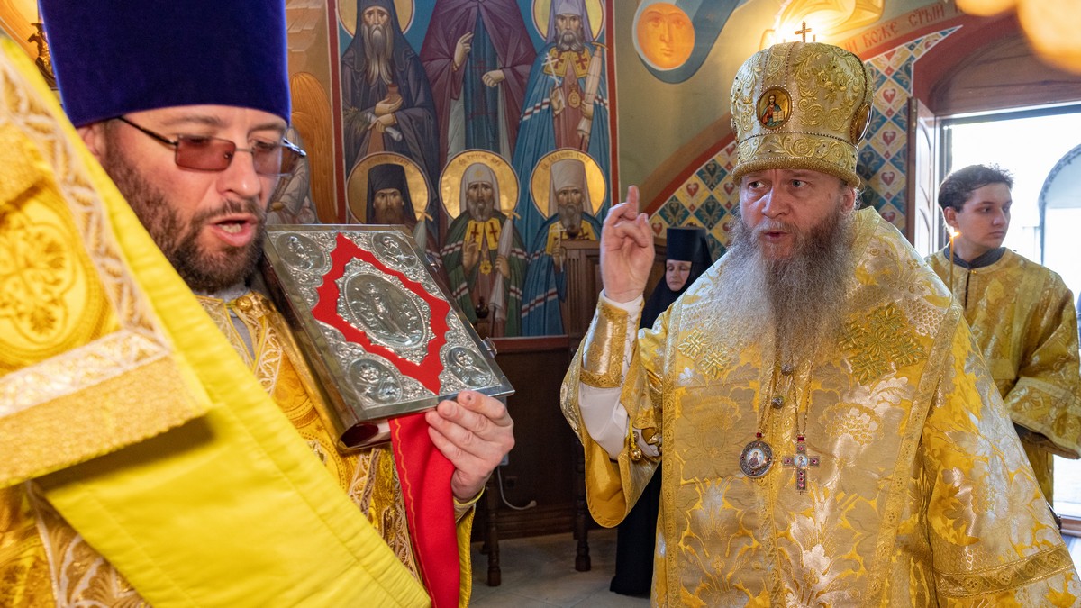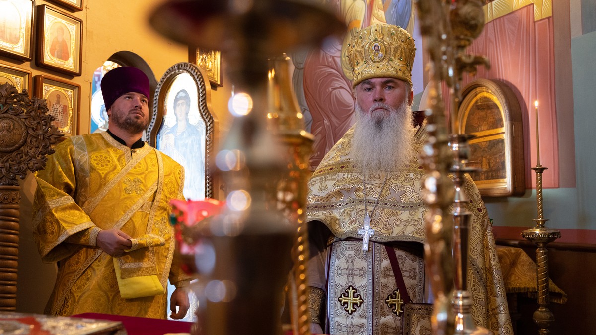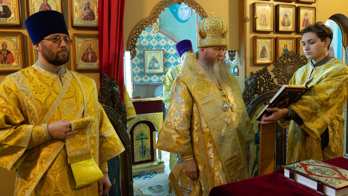 После сугубой ектении владыка вознес молитву о мире на Святой Земле, молитву о Святой Руси, и молитву об исцелении болящих.
