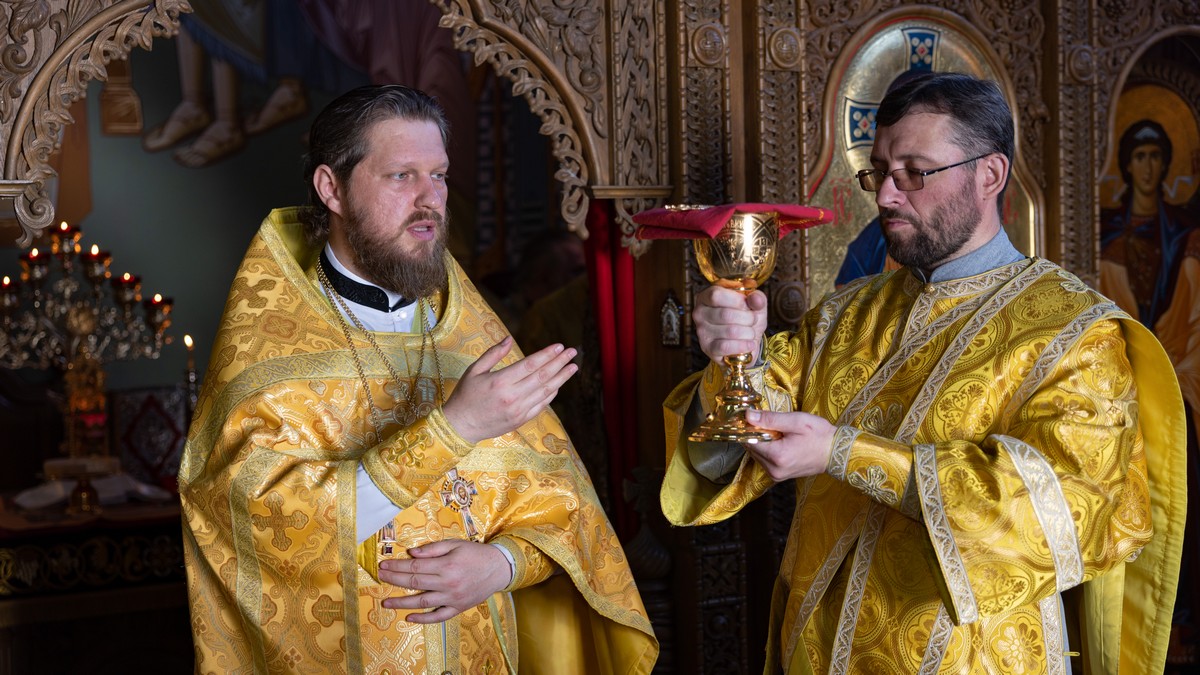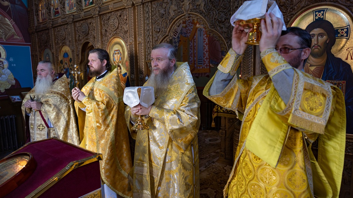 За Литургией Его Высокопреосвященству сослужил секретарь епархии прот. Андрей Зозуля и сотрудники епархиального управления в священном сане.