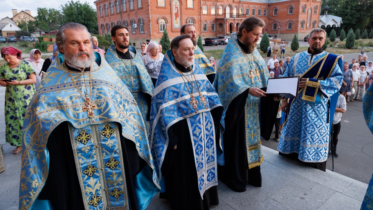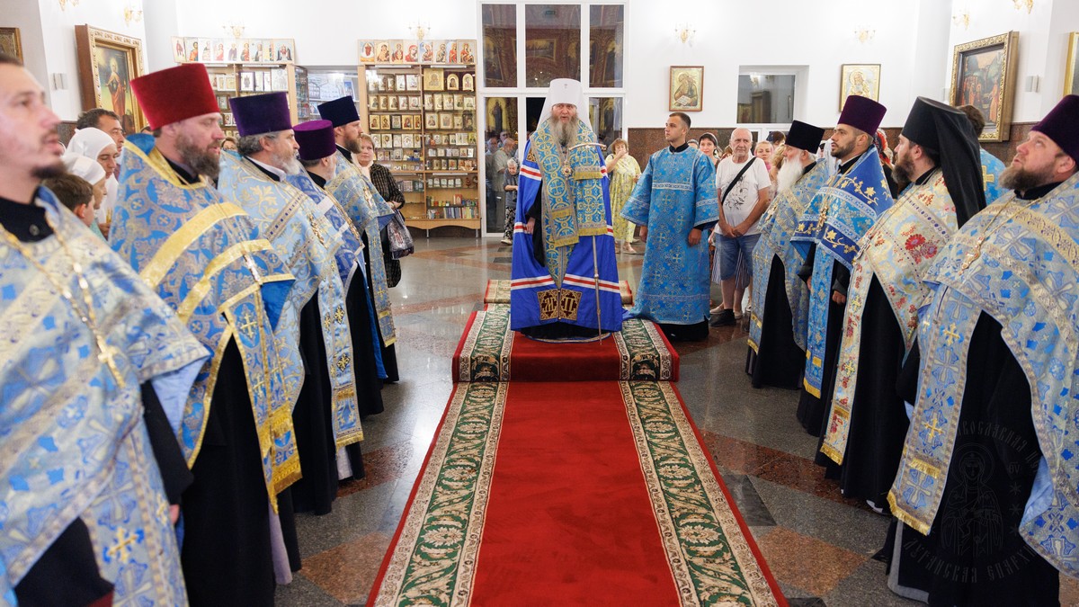 В ожидании встречи, Высокопреосвященнейший Пантелеимон, митрополит Луганский и Алчевский, в сослужении духовенства кафедральных соборов, совершил молебное акафистное пение Пресвятой Богородице.