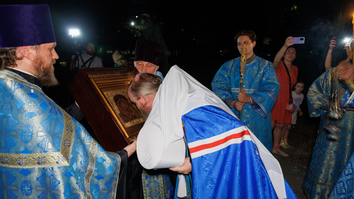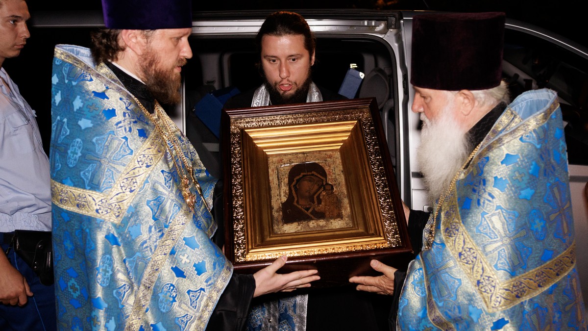 Вечером 20 июля, в канун праздника Казанской иконы Божией Матери, в Свято-Владимирском кафедральном соборе состоялась торжественная встреча новообретенного списка Казанского образа Пресвятой Богородицы.
