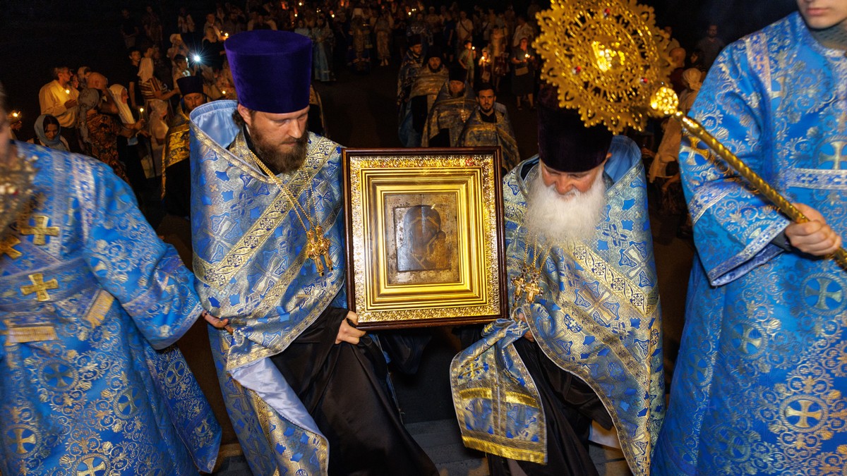 Принесение святого образа осуществляется по благословению Святейшего Патриарха Московского и всея Руси Кирилла в рамках Всероссийского крестного хода и молебна о Победе.
