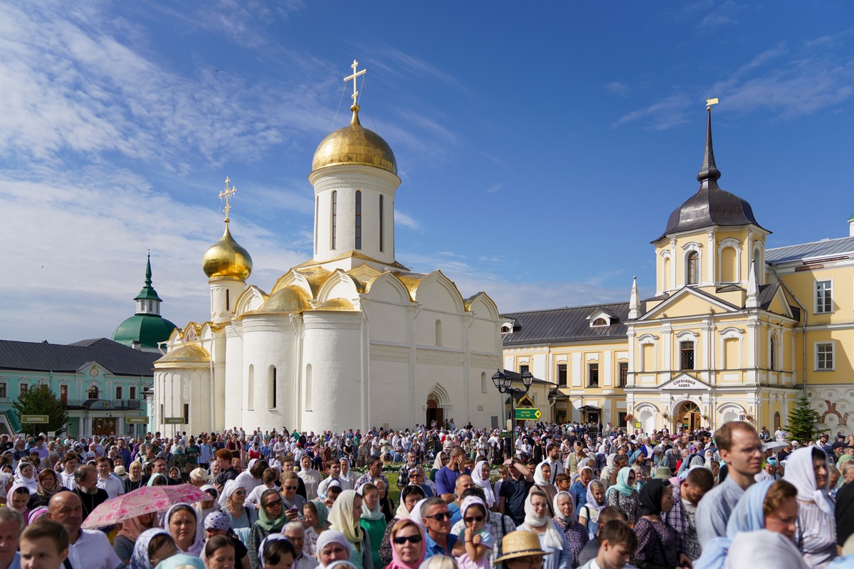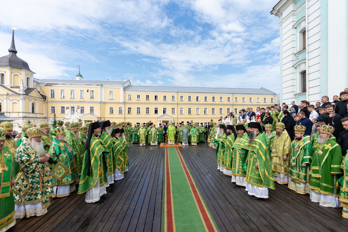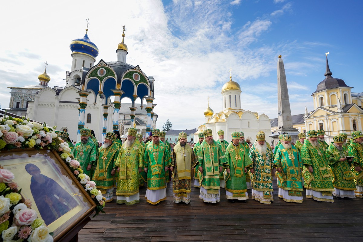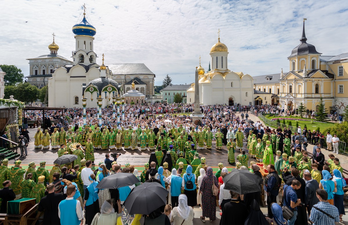 Торжественное богослужение прошло перед чтимой иконой преподобного Сергия Радонежского. Специально для этого на Соборной площади был устроен помост, а перед Успенским собором Лавры — престол под сенью.