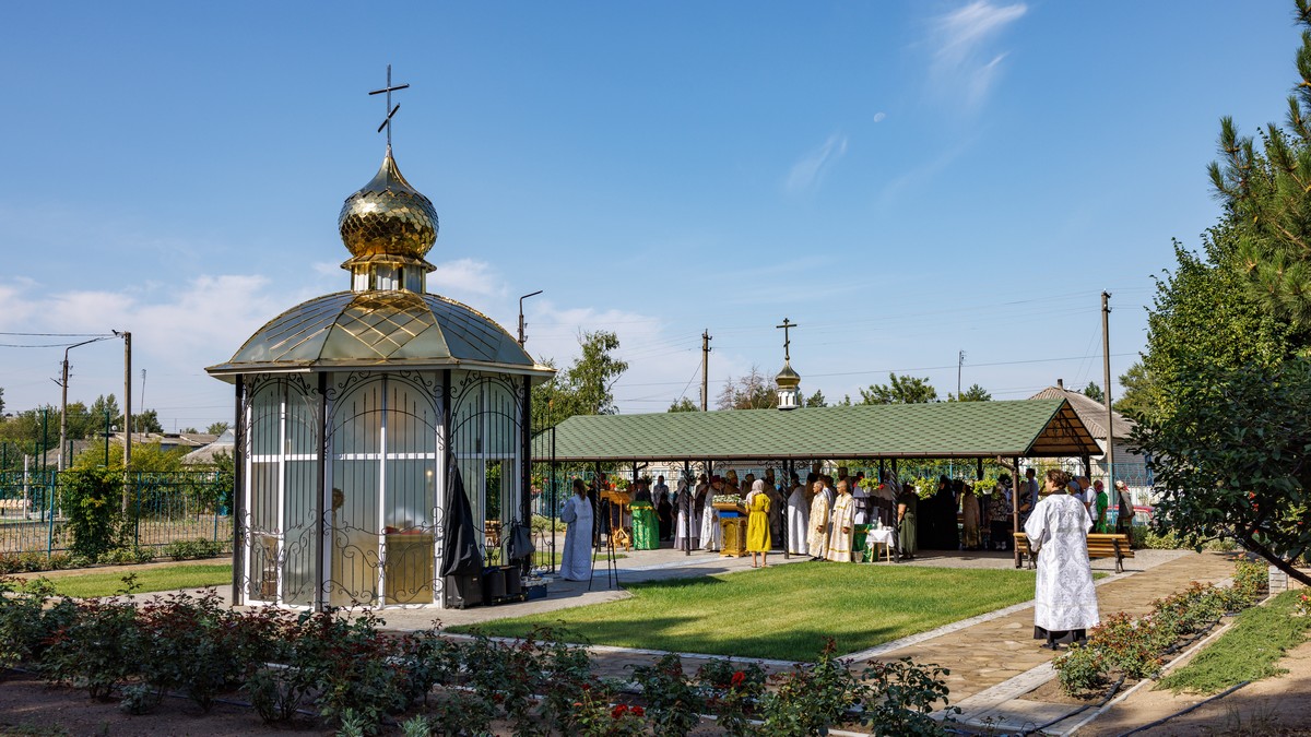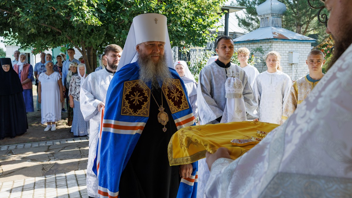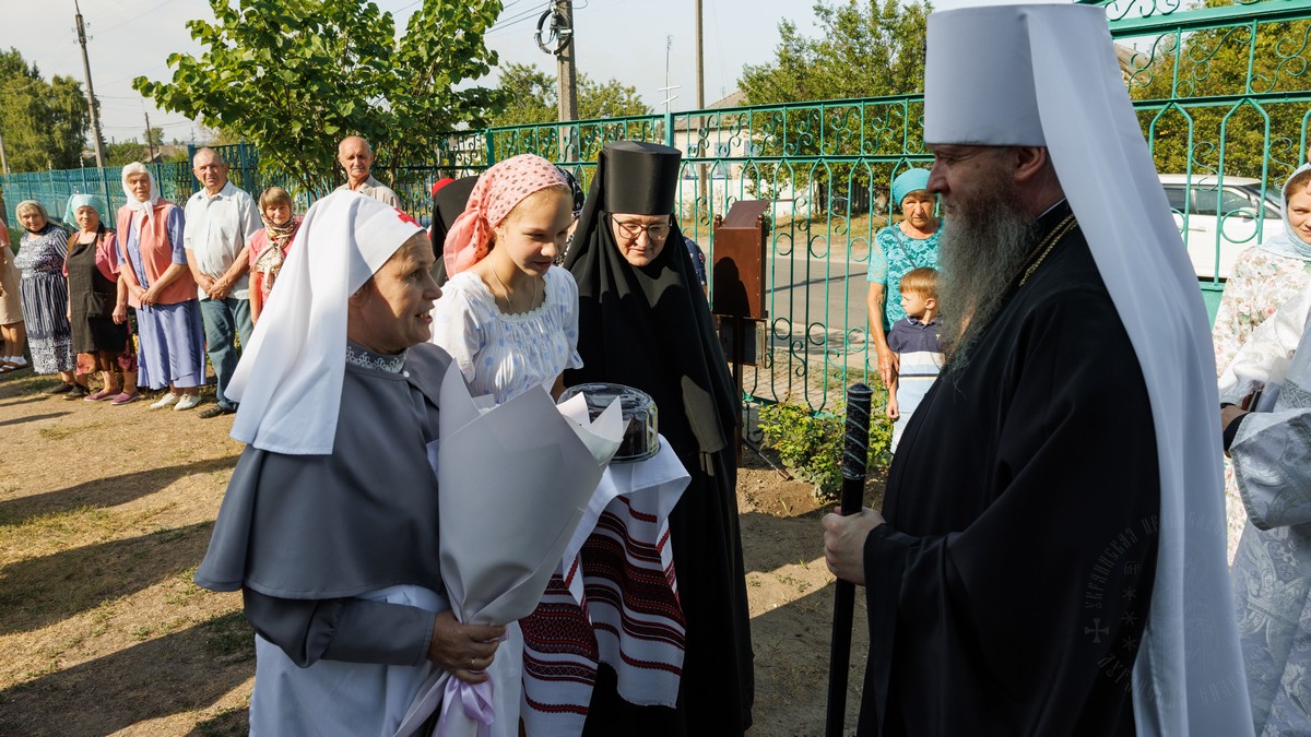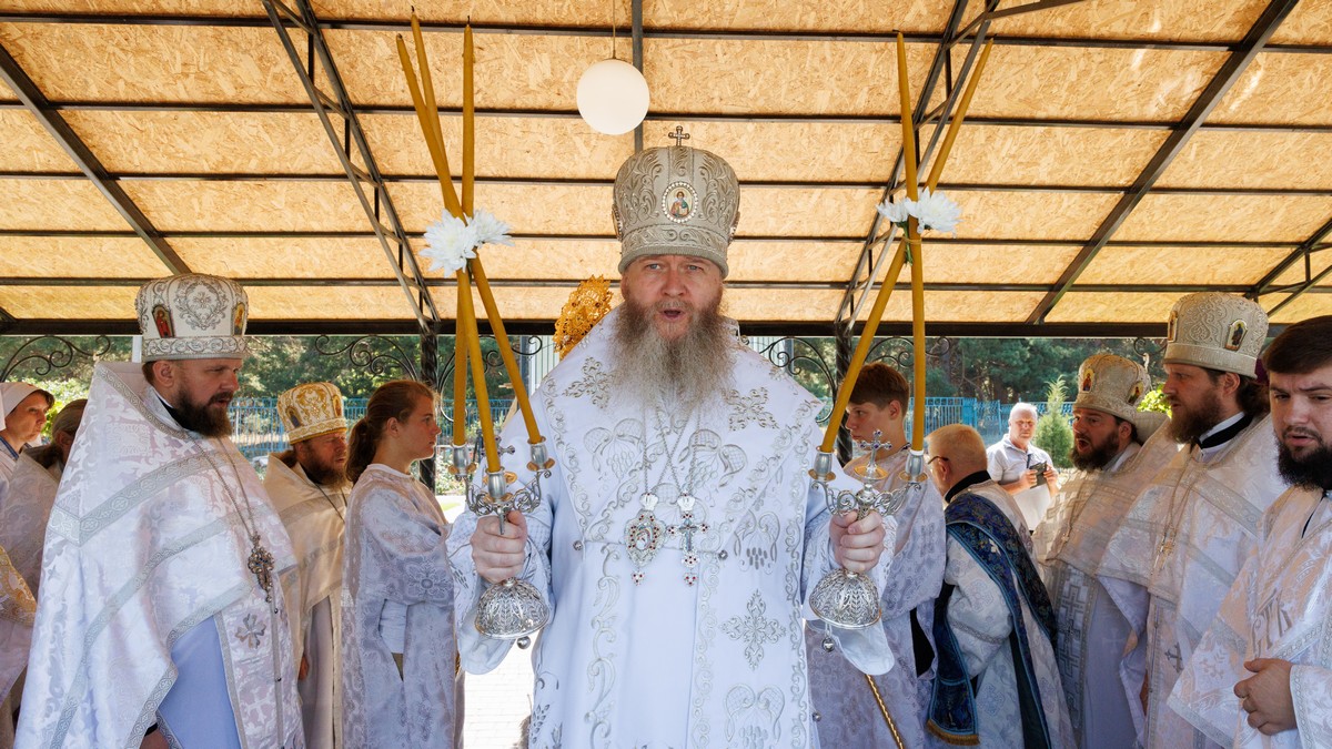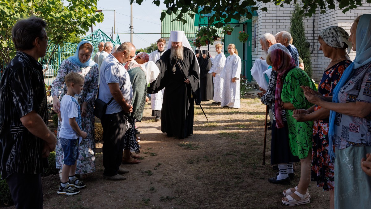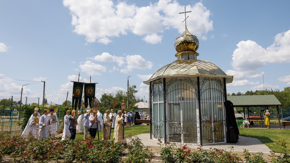 По окончании Литургии архипастырь вместе с духовенством и верующим народом совершил крестный ход, во время которого освятил поклонный Крест, установленный в память о жертвах, пострадавших в поселке от боевых действий 2014 года.