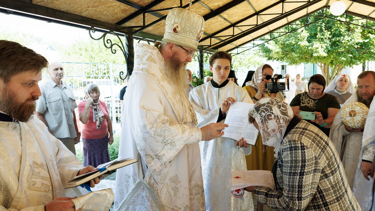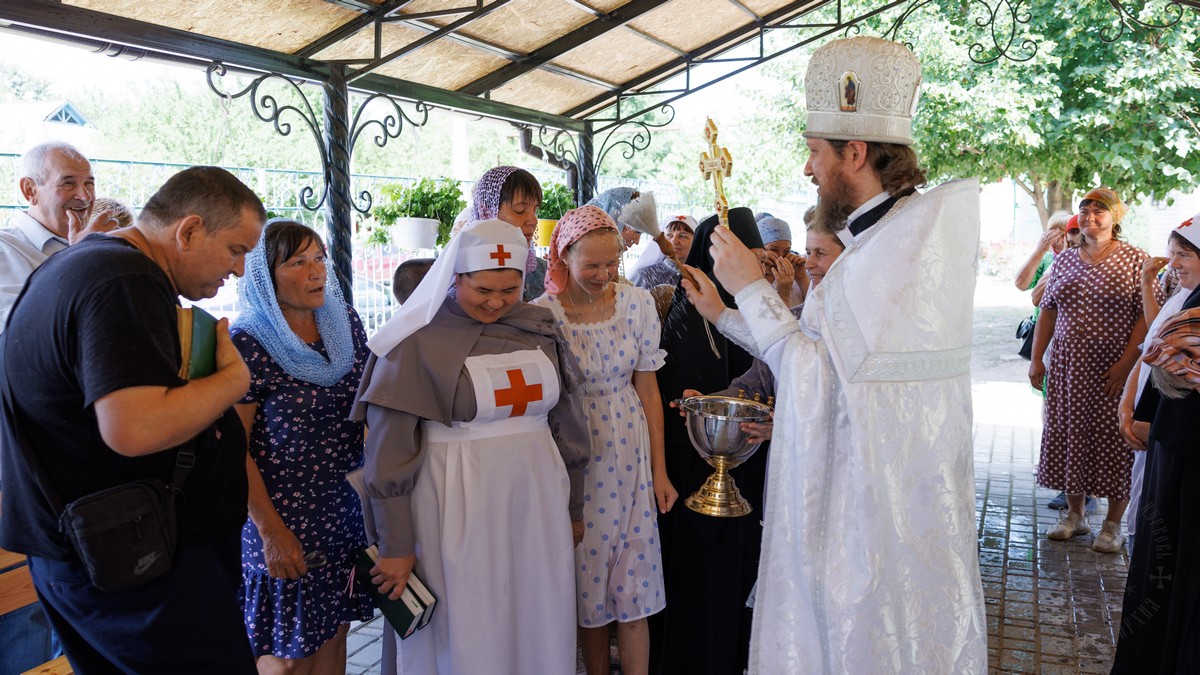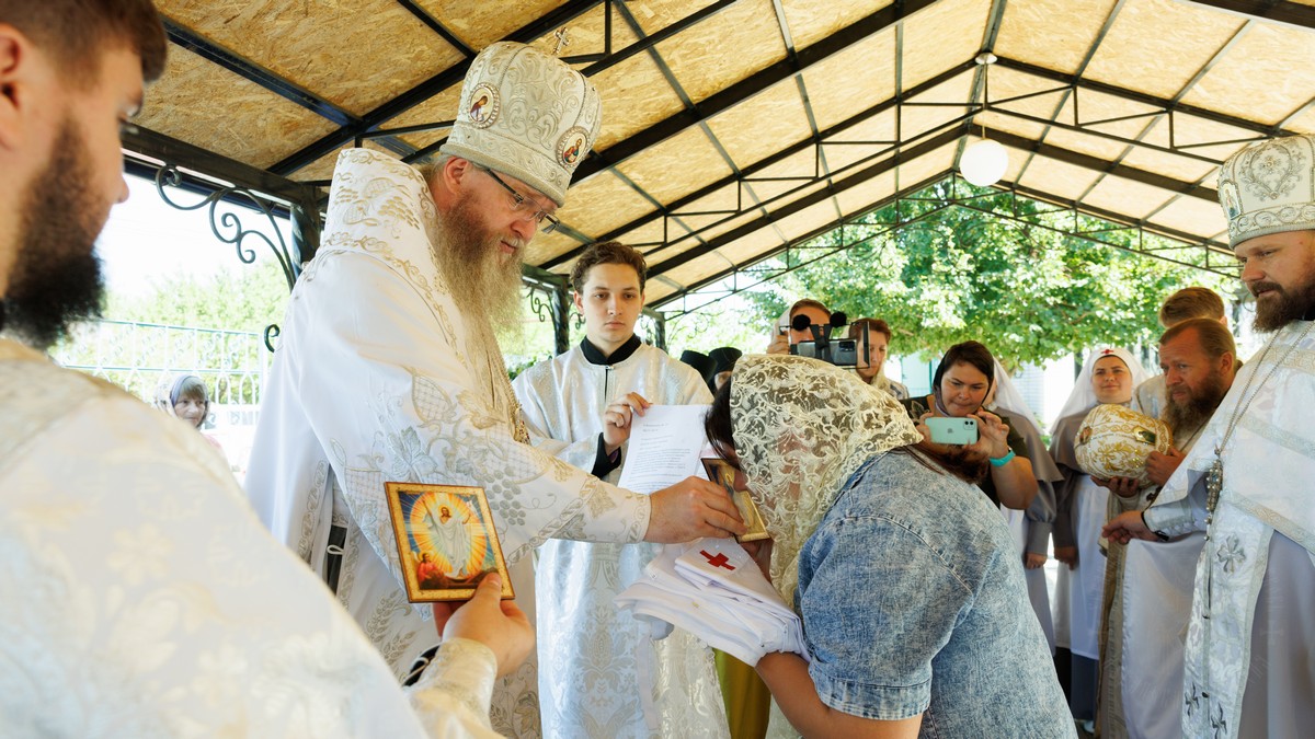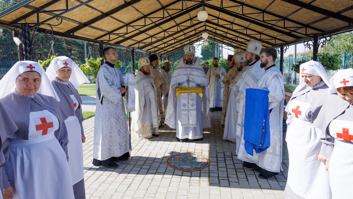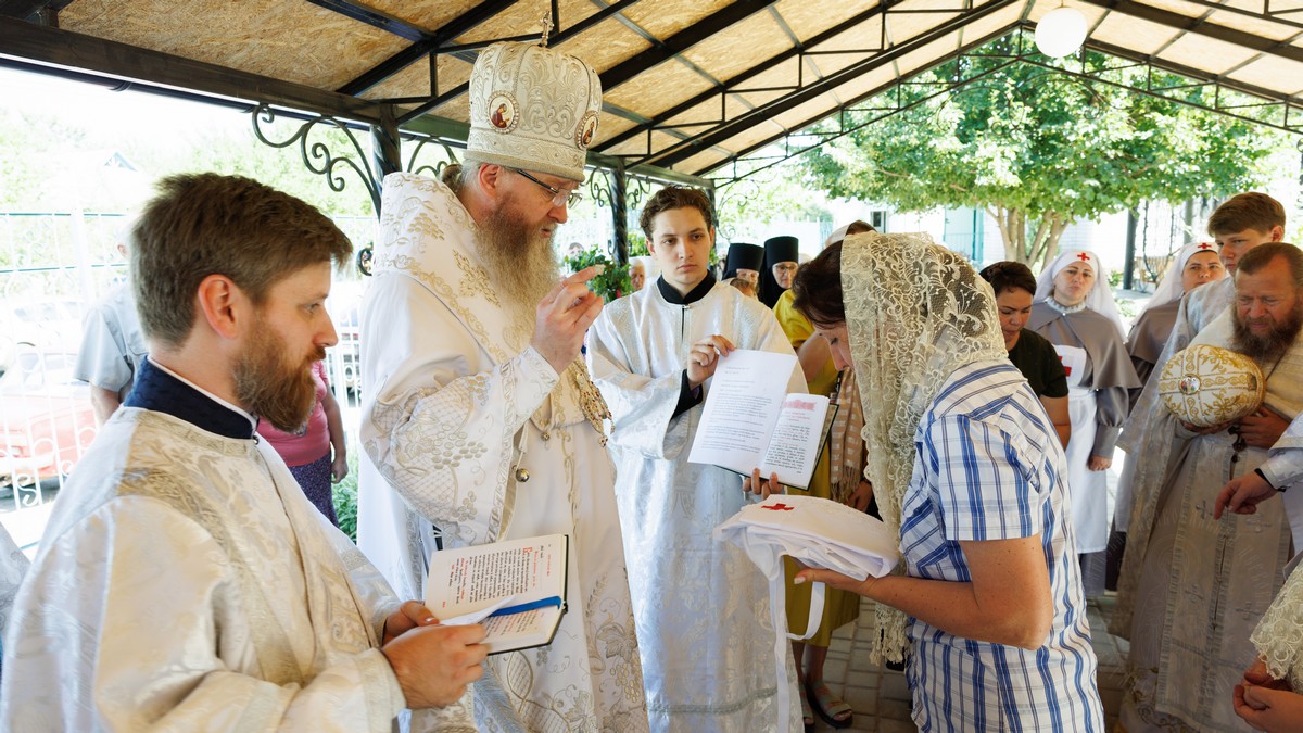До начала Литургии владыка совершил молебное пение «на всякое доброе дело», во время которого совершил чин посвящения в сестёр милосердия благочестивых тружениц прихода.